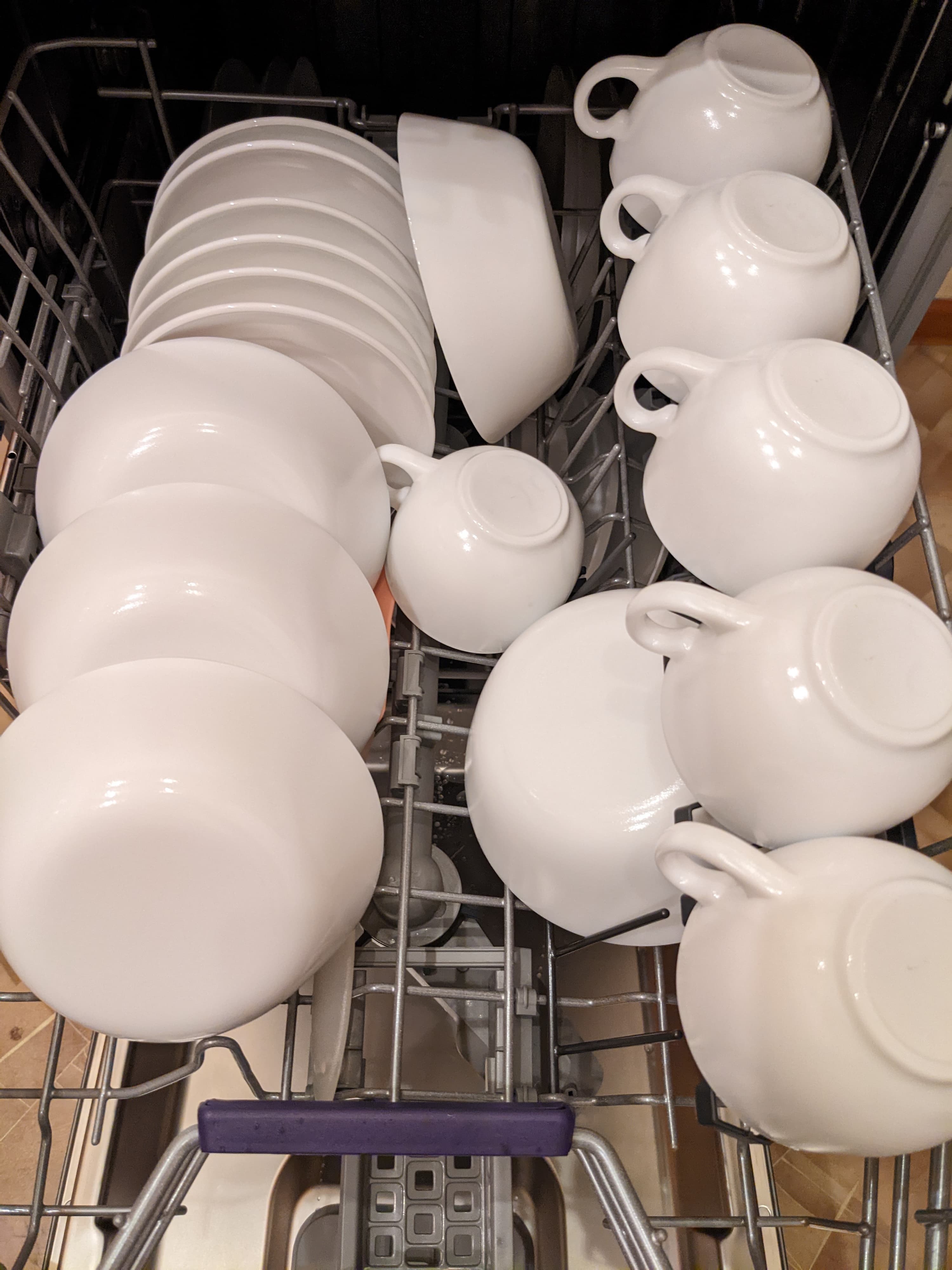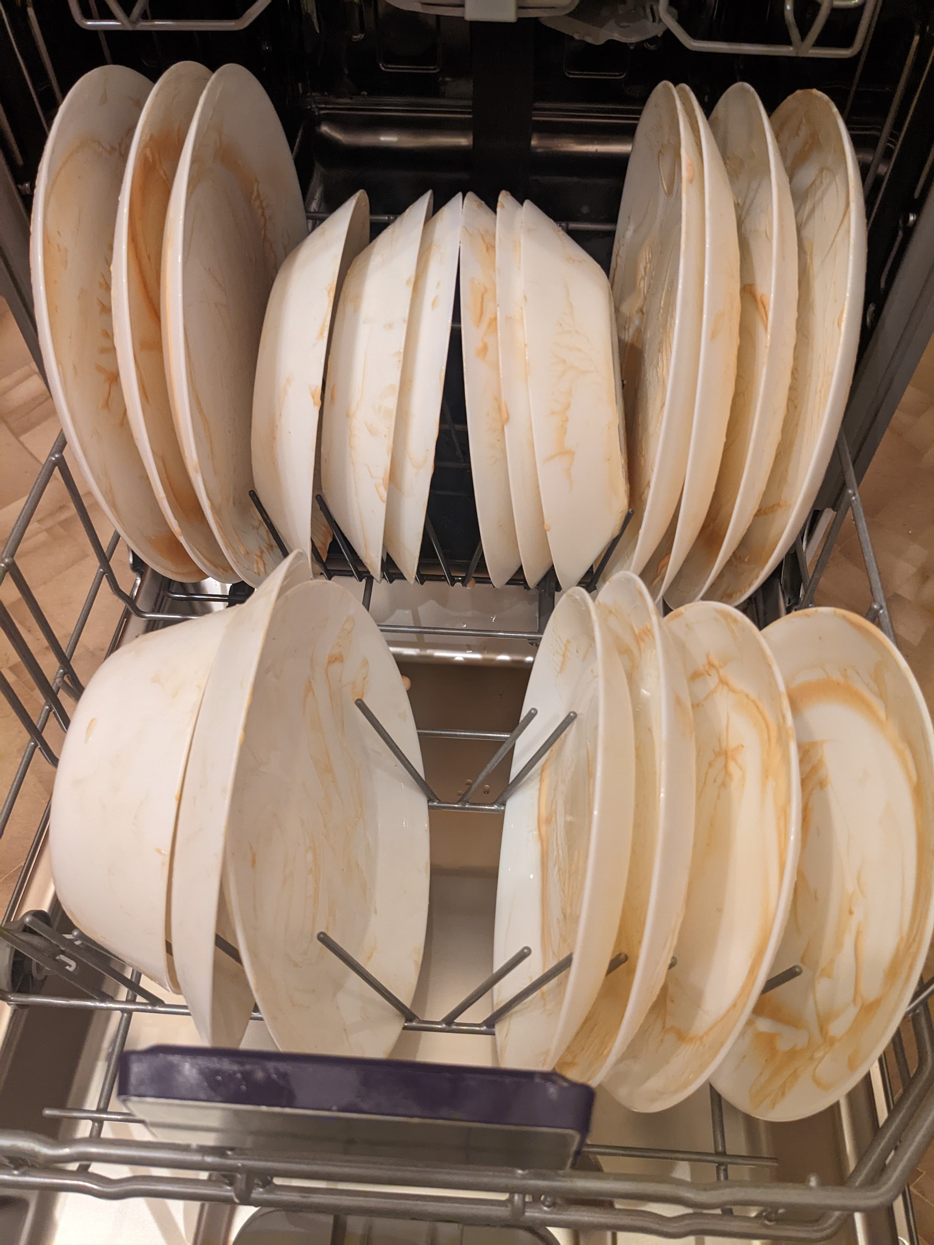 Когда посудомойка остановилась, мы убедились, что все отмыто до хрустального блеска. Ни следа томатного соуса.