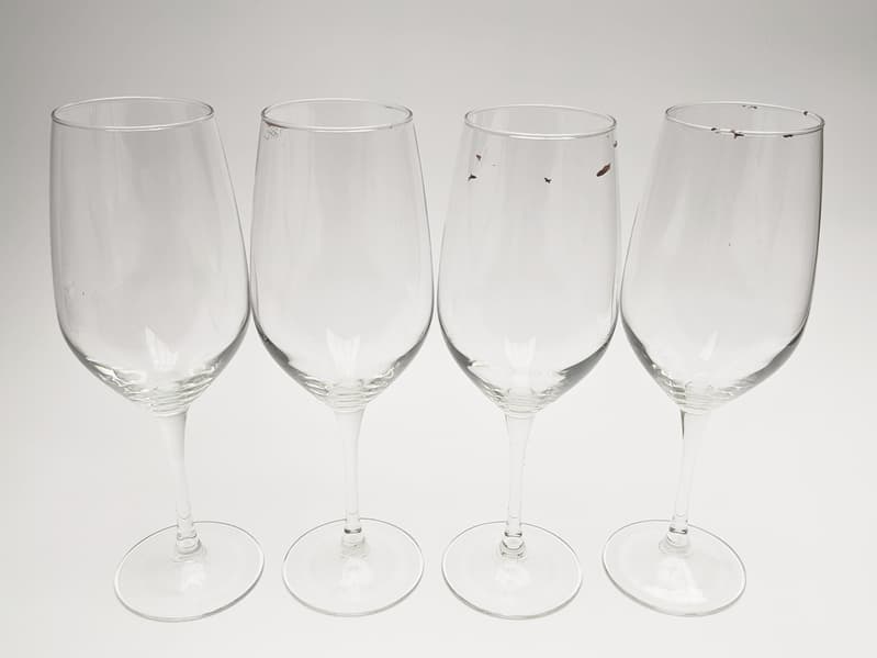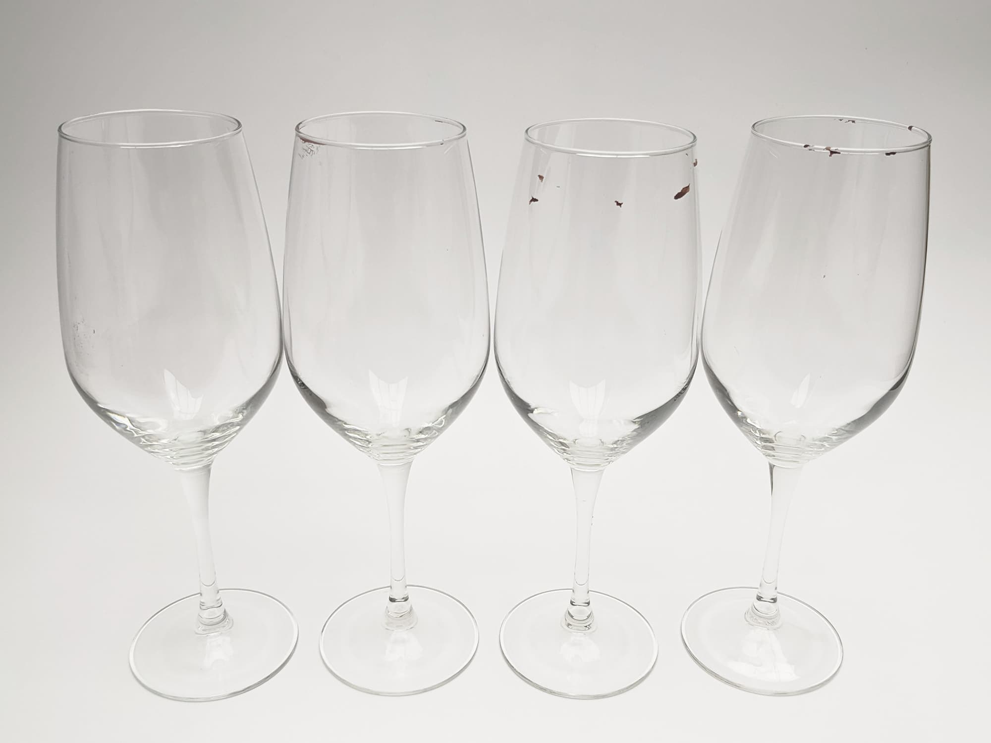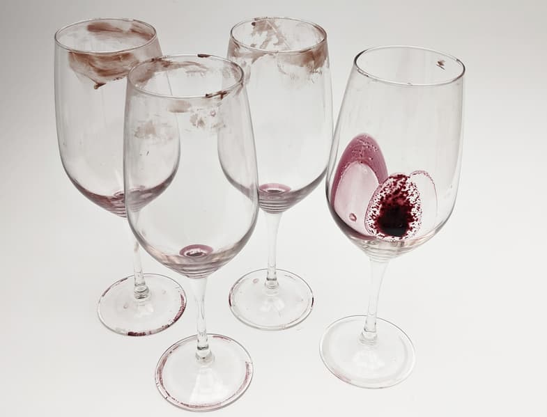 Теперь переходим к вечеринке! Точнее, ее имитации: испытанию программы для стеклянной посуды. Три тонких бокала объемом 0,6 л вымазали губной помадой (надо бы цвет новый взять, а то этот уже приелся) и красным вином. А потом опять же оставили на сутки, потому что обычно все так и делают: говорят — утром уберемся, а сами либо спят весь день, либо на работу плетутся из последних сил. Вернутся вечером — а всё уже и засохло.