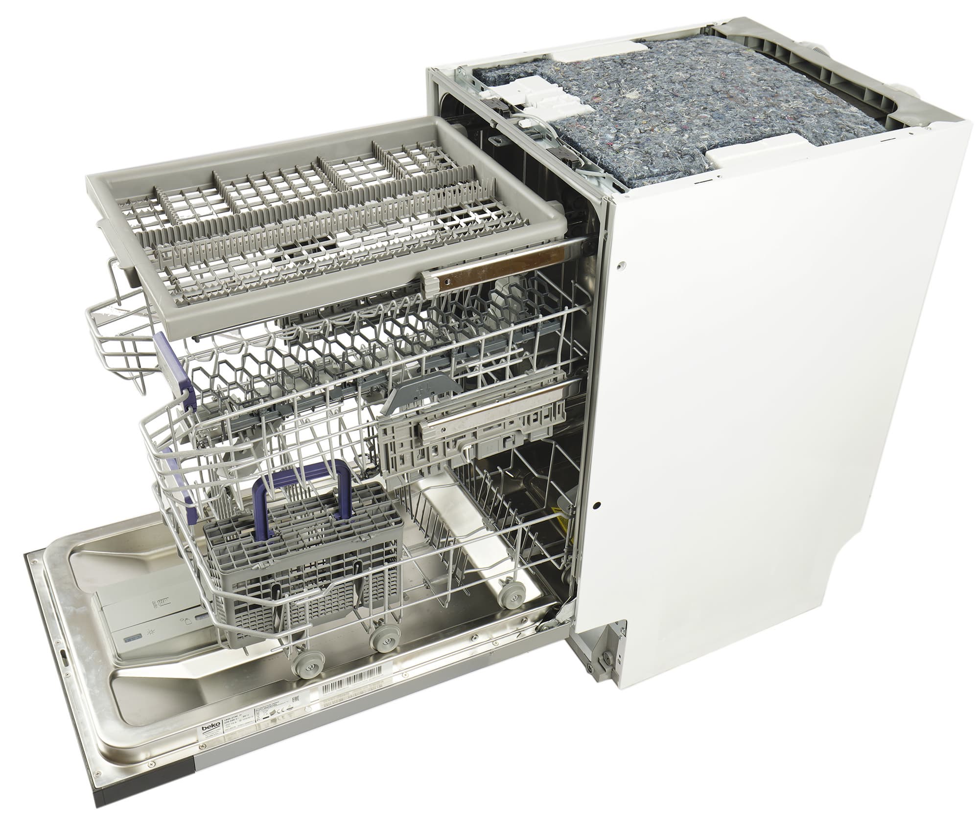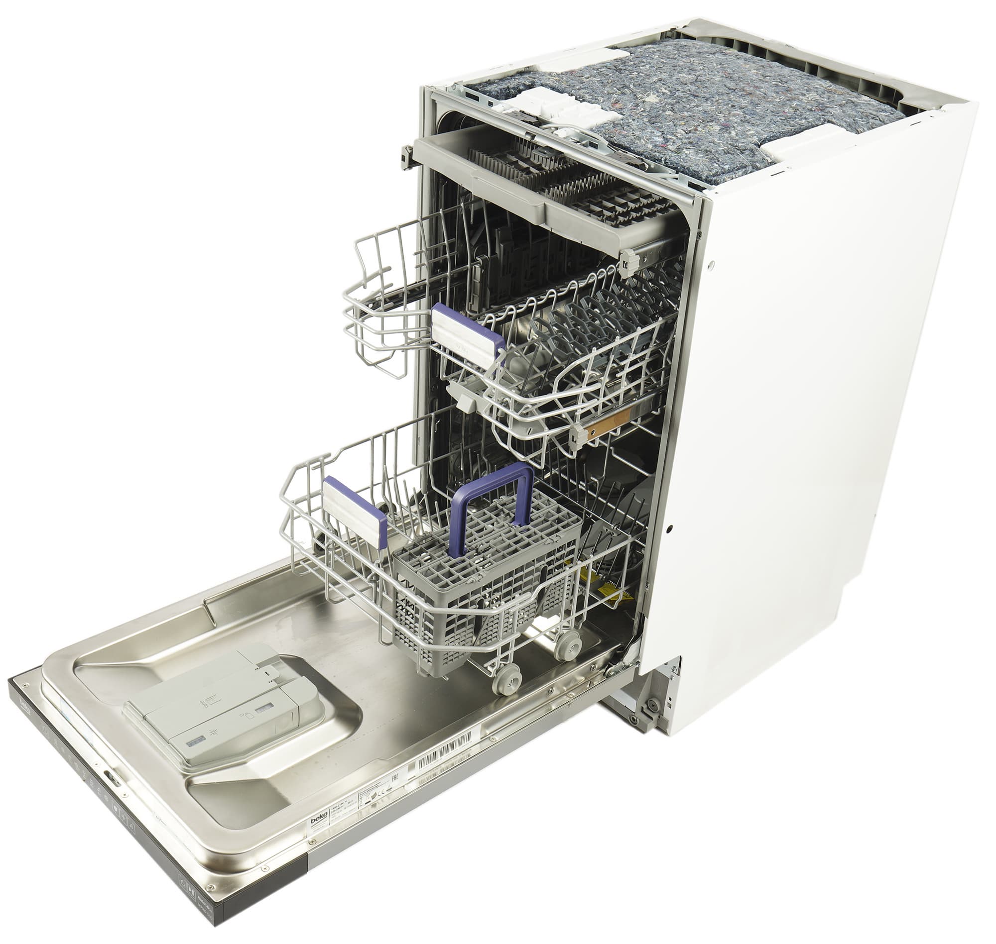 Узкая полновстраиваемая посудомоечная машина Beko BDIS38120A понравилась нам удобной и рациональной конструкцией полок, наличием третьей корзины для столовых приборов, которые можно, однако, разместить и в традиционной корзинке внизу, функциональной подсветкой и хорошей экономичностью.
