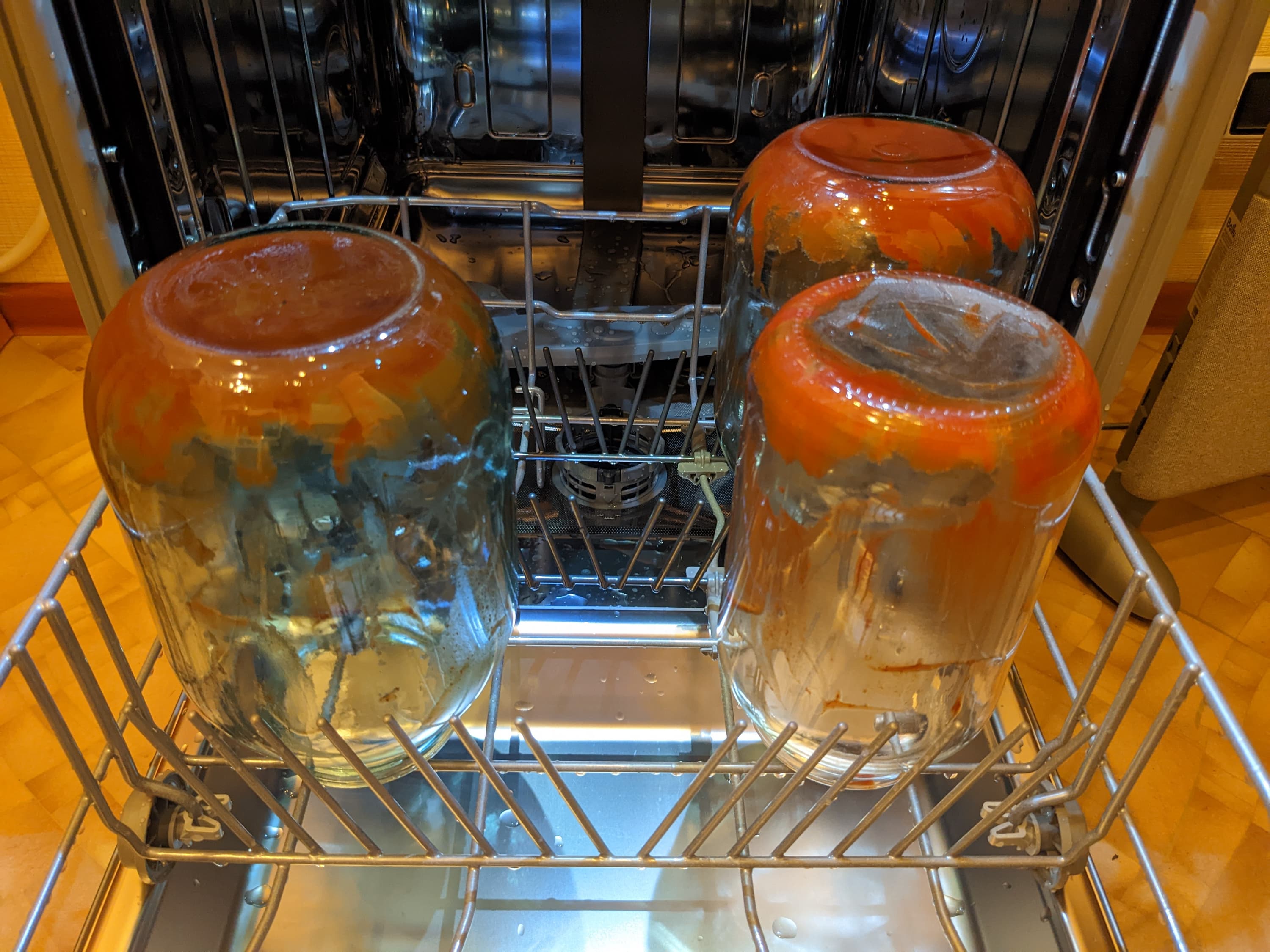 Кетчупа у нас в лаборатории уходит — это прямо ужас что такое. Вот и сейчас три банки — две трехлитровых и двухлитровую — вымазали им изнутри (уже не смешивая с майонезом) и снова оставили на сутки.