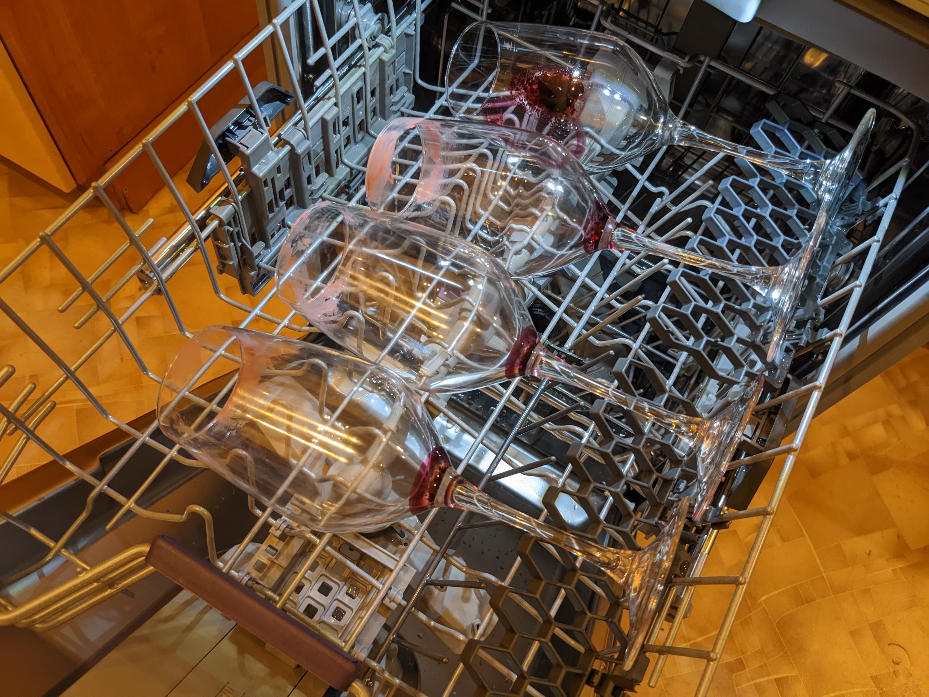 Запустили цикл бережного мытья, разработанный для стеклянной посуды, и через положенное время достали идеально сухие бокалы.