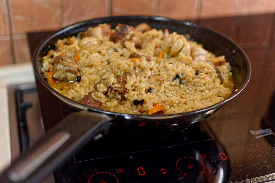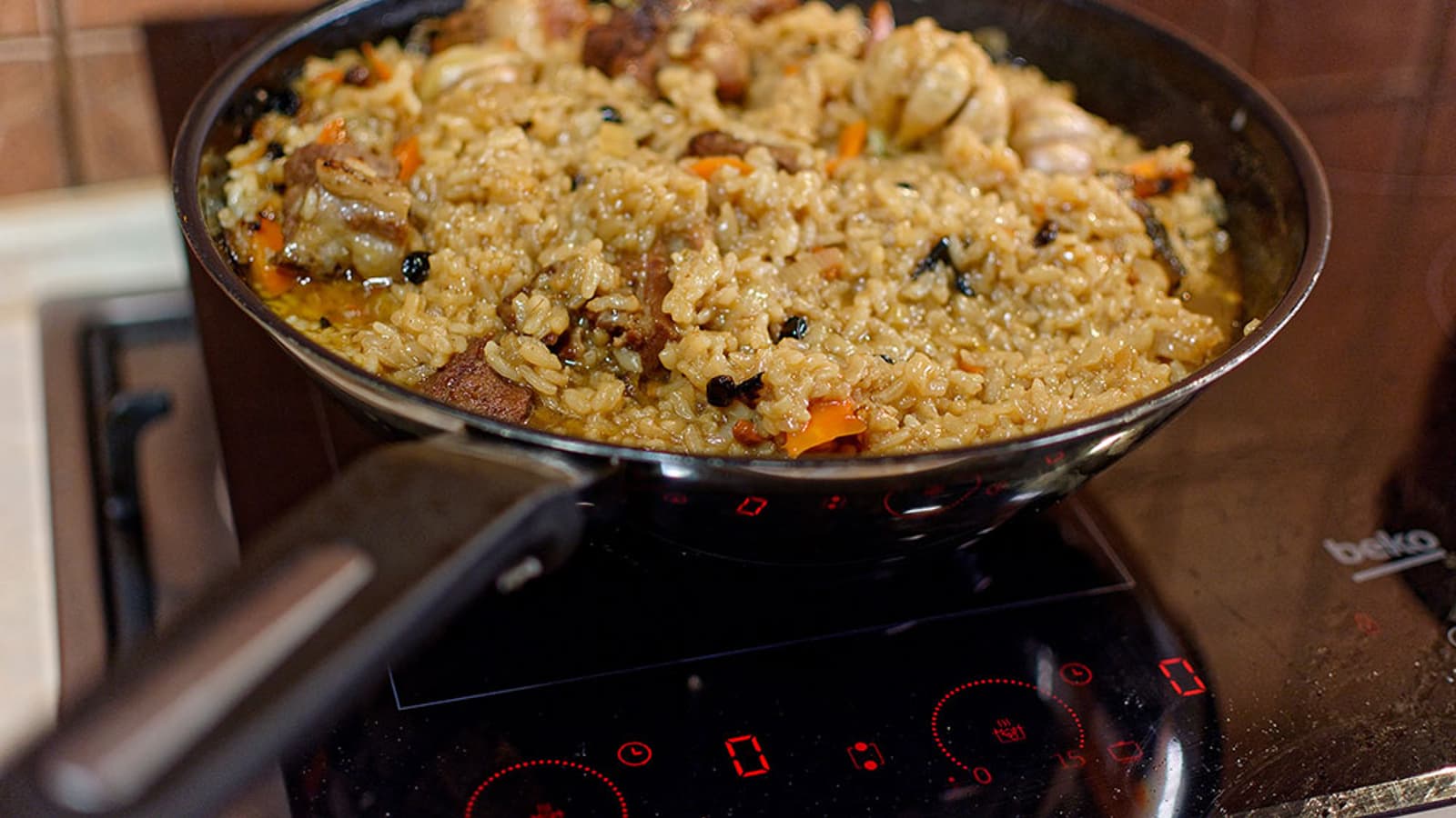 Теперь ответственный момент: блюдо, которое требует очень большого и интенсивного нагрева: плов. Далеко не все индукционные варочные поверхности, побывавшие в наших руках, справились с этим тестом.