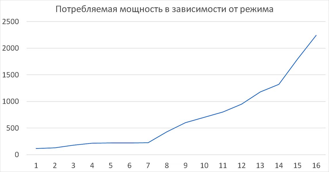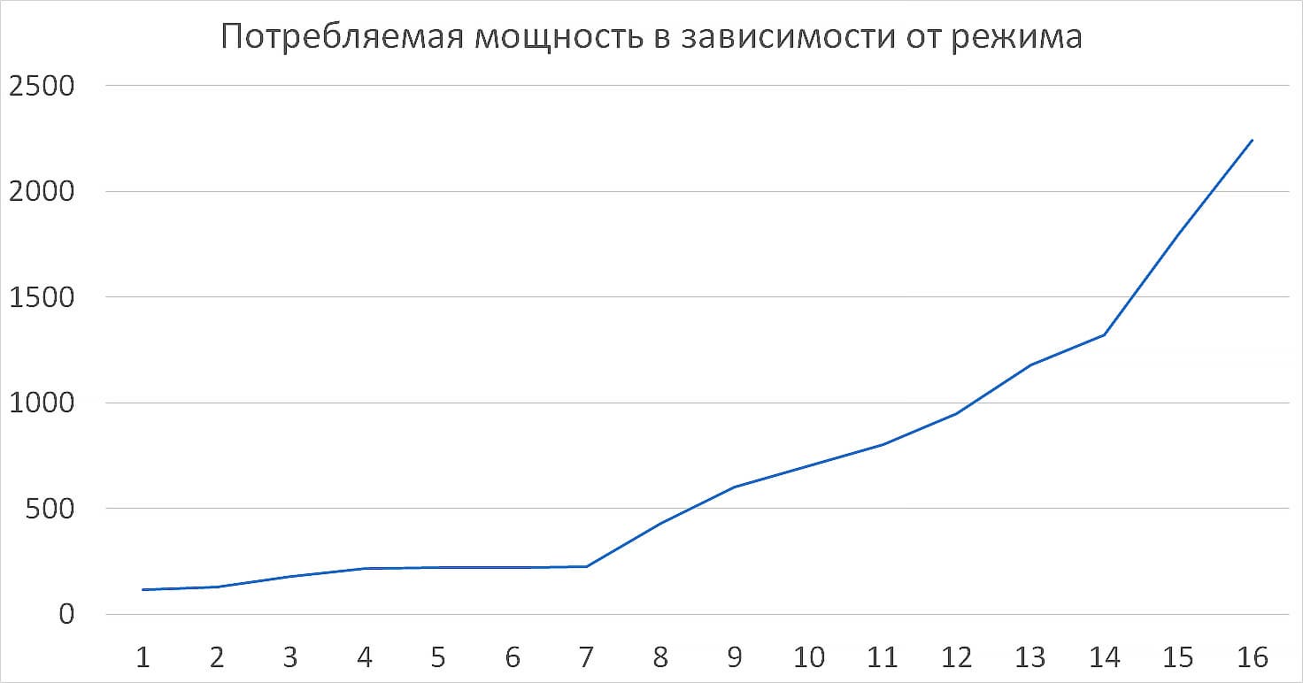Как мы видим, несмотря на разницу в мощности, алгоритм поведения всех конфорок очень похож: сначала следует очень долгий «пологий» период, он же — период скважной (с отключениями) работы конфорок. Далее отключения прекращаются и график приобретает черты почти что прямой, идущей довольно резко вверх.