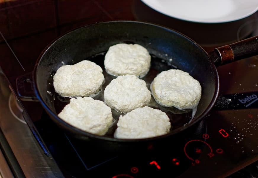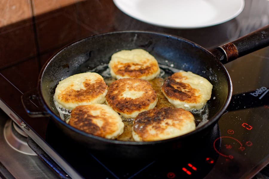 Поэтому мы, не мудрствуя лукаво, при обжарке поворачивали наши сырники разными сторонами, добиваясь равномерной прожарки. Нет особых проблем.