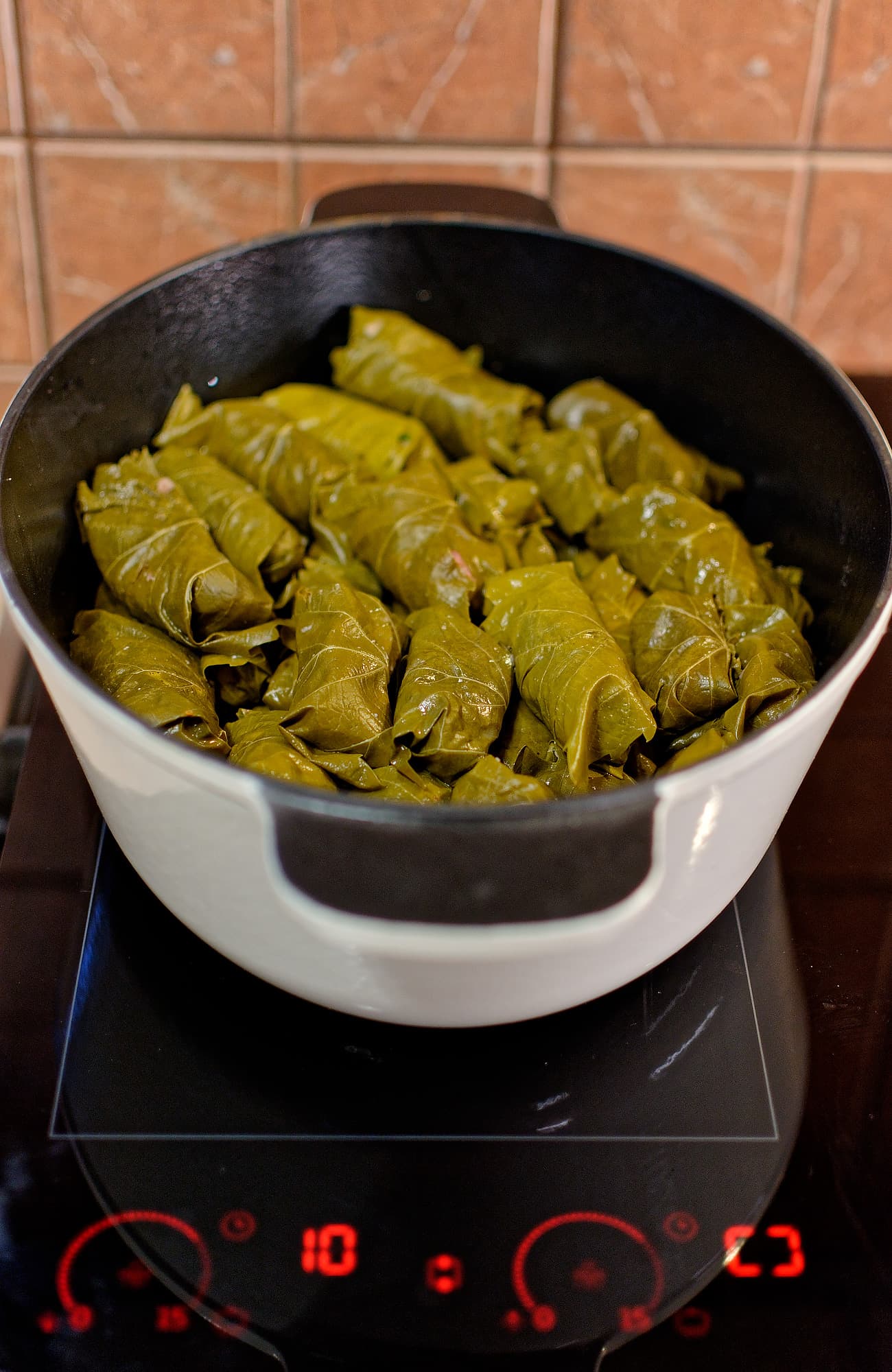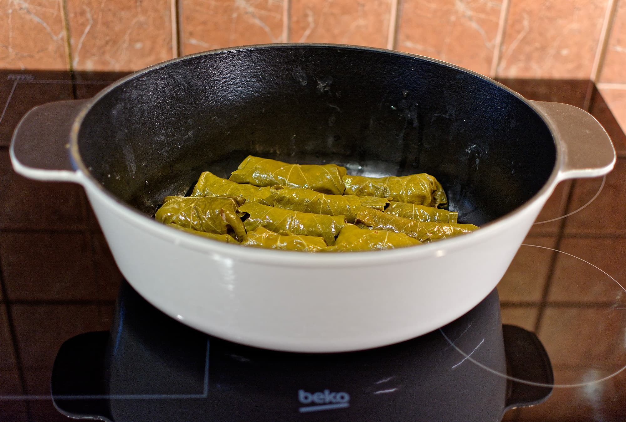 Продолжаем исследовать возможности варочной поверхности. На этот раз делаем долму — голубцы из виноградных листьев, в классической латке (утятнице).