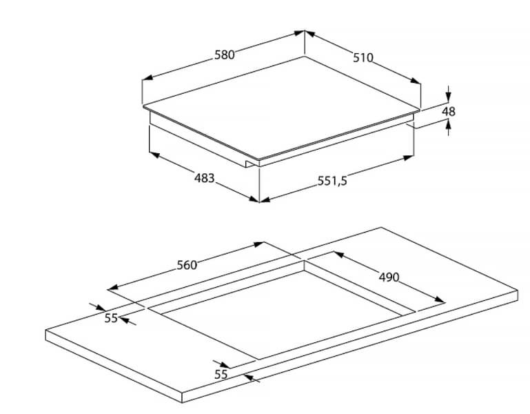| Номинальная мощность конфорок | 1×1500(2200), 2×1800(3000), 1×2300(3700) Вт (boost) |