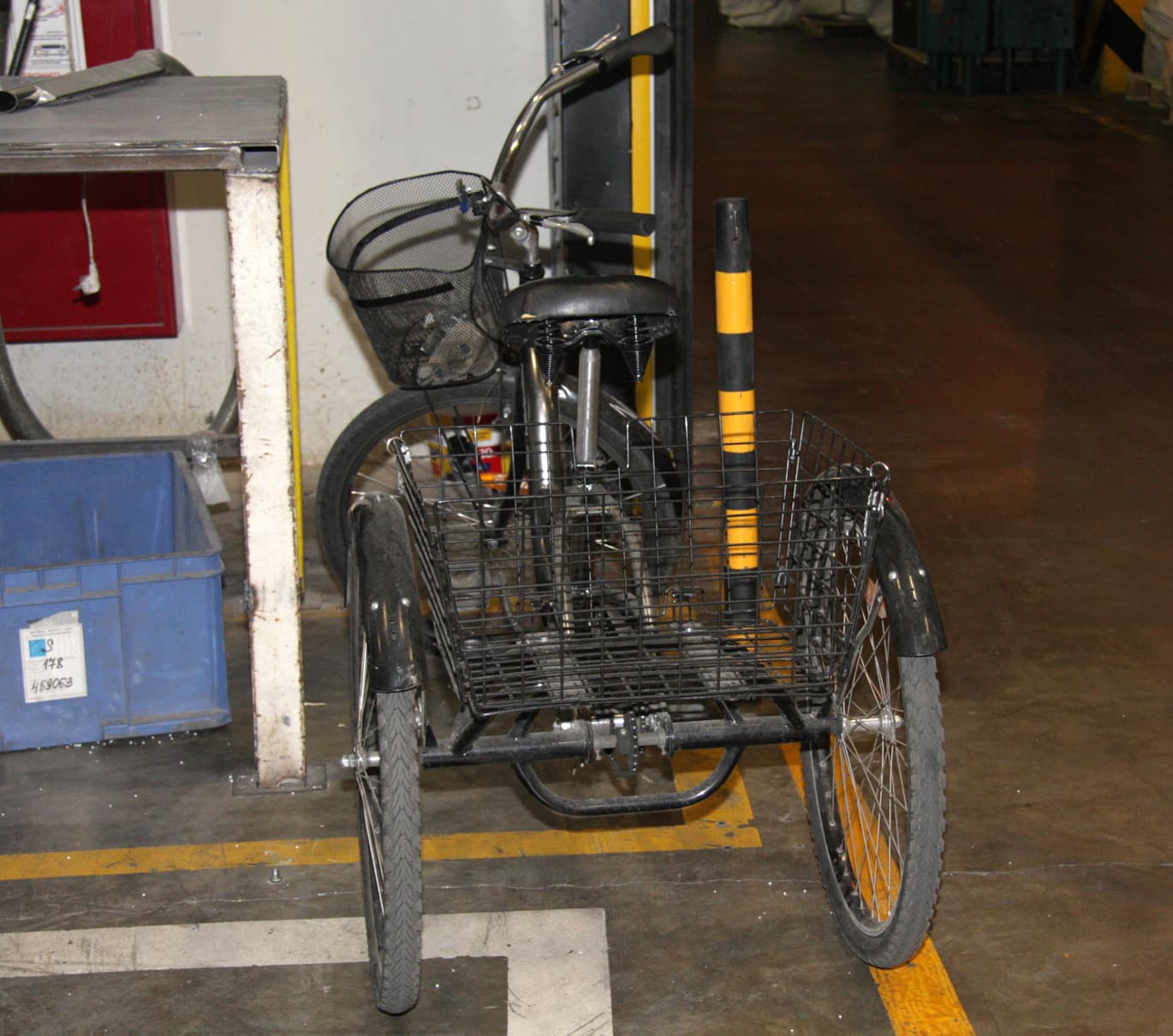 Надо отметить, что на производстве действительно было чисто. Еще из интересного, увиденного на заводе: ремонтный персонал перемещается по территории на вот таких трехколесных велосипедах.