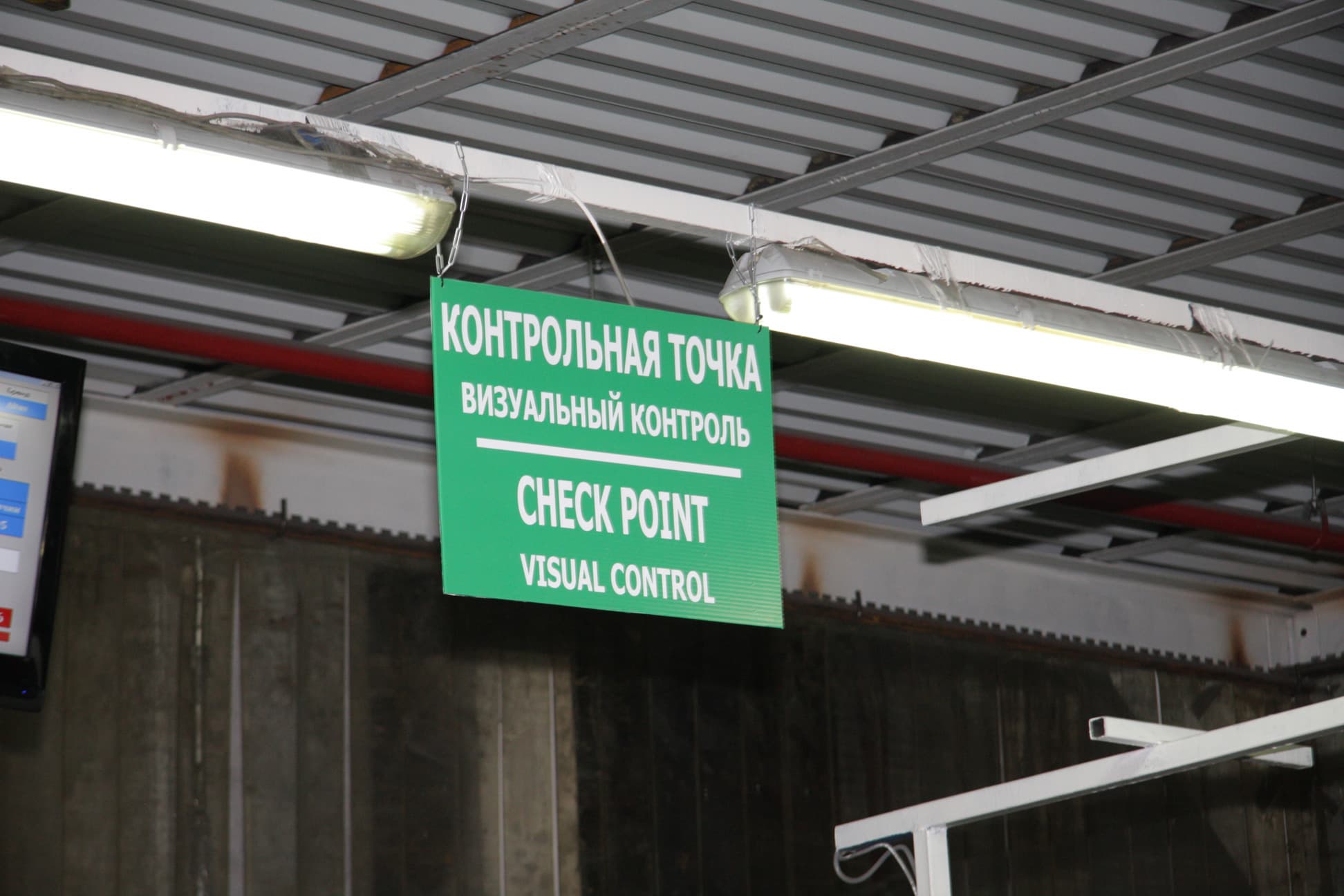 Вдоль конвейерных линий размещены многочисленные стенды и мониторы, подсказывающие работнику, что нужно делать. Критические для результата участки отмечены специальными табличками, а в ряде случаев наглядно разъясняется, как делать нужно, а как не нужно.
