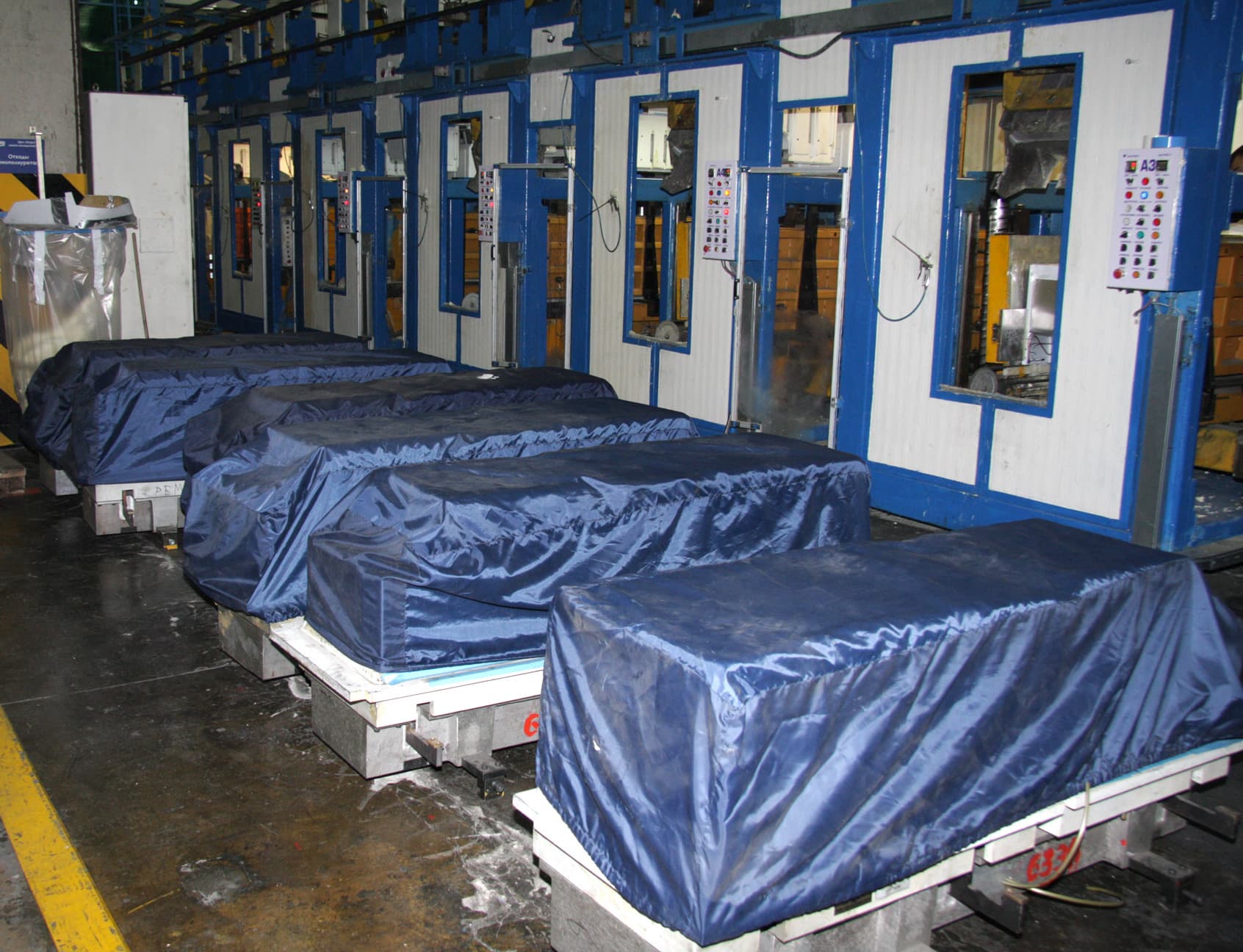 После этого контроль за давлением в системе выявляет отсутствие герметичности. В процессе этого холодильники движутся по карусели на тележках с вакуумными насосами.