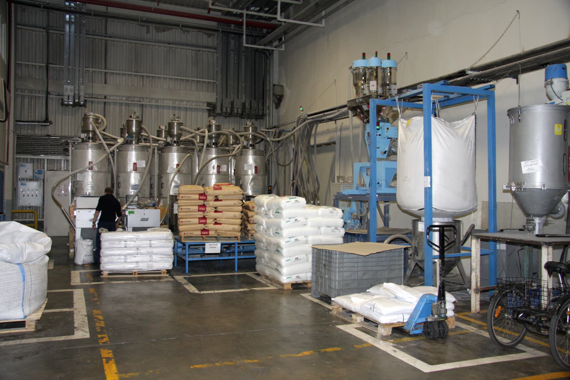 Специальный миксер при необходимости может смешать гранулы нескольких видов пластика для получения материала с нужными характеристиками.
