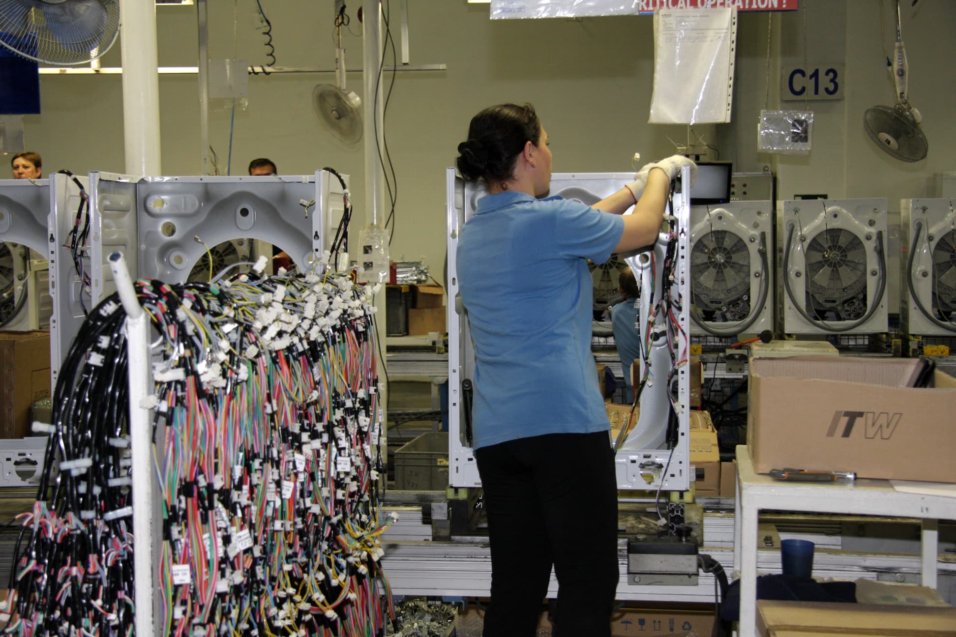 Далее — подборка фотографий с конвейеров по сборке холодильников, стиральных машин и из цеха по производству пластмассовых деталей.