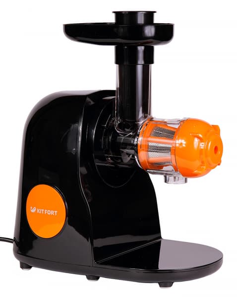 Неплохим выбором (особенно для компактной квартиры) может стать миниатюрная шнековая соковыжималка Kitfort KT-1111. Этот прибор, имеющий мощность всего в 150 Вт, с легкостью справится с отжимом соков из сочных фруктов (и чуть сложнее — с обработкой твердого и сухого сырья, например с овощами).