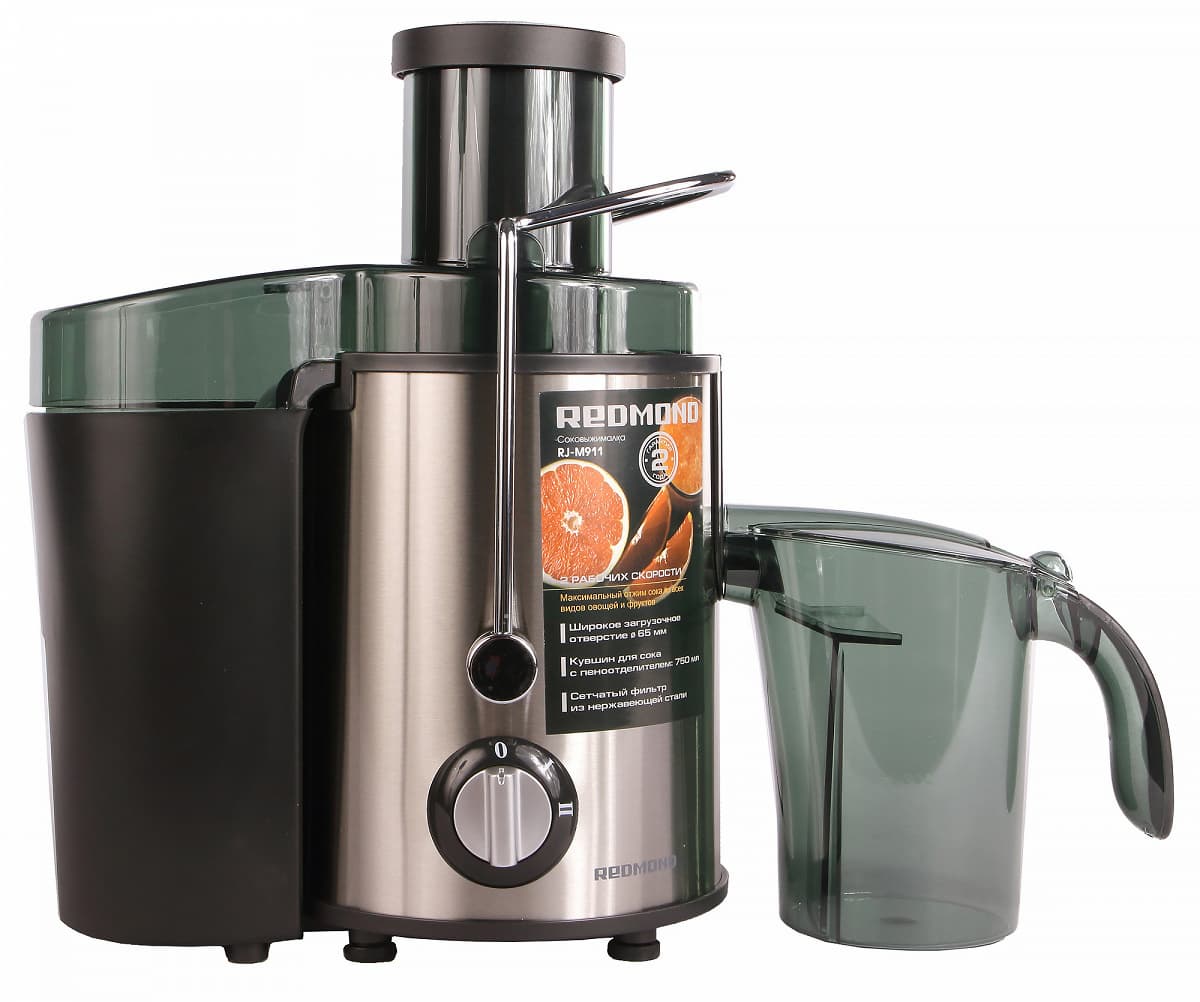 Redmond RJ-M908 входит в линейку Professional series компании Redmond. Данный прибор отличается большим диаметром загрузочного отверстия, а следовательно — у пользователя не уйдет много времени на подготовку (нарезку) исходного сырья. Некоторые овощи и фрукты влезут и вовсе без нарезки. У данной модели предусмотрено пять скоростей для получения сока из разных продуктов — от мягких ягод и цитрусовых до корнеплодов.