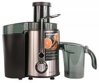 По результатам наших тестов данная модель была признана лучшей среди центробежных соковыжималок по эффективности отжима. По быстроте работы прибор входит в среднюю категорию. С учетом относительно невысокой цены такую соковыжималку можно смело рекомендовать как для ежедневного использования, так и для переработки урожая на даче (конечно, если этот урожай не достигает промышленных масштабов).
