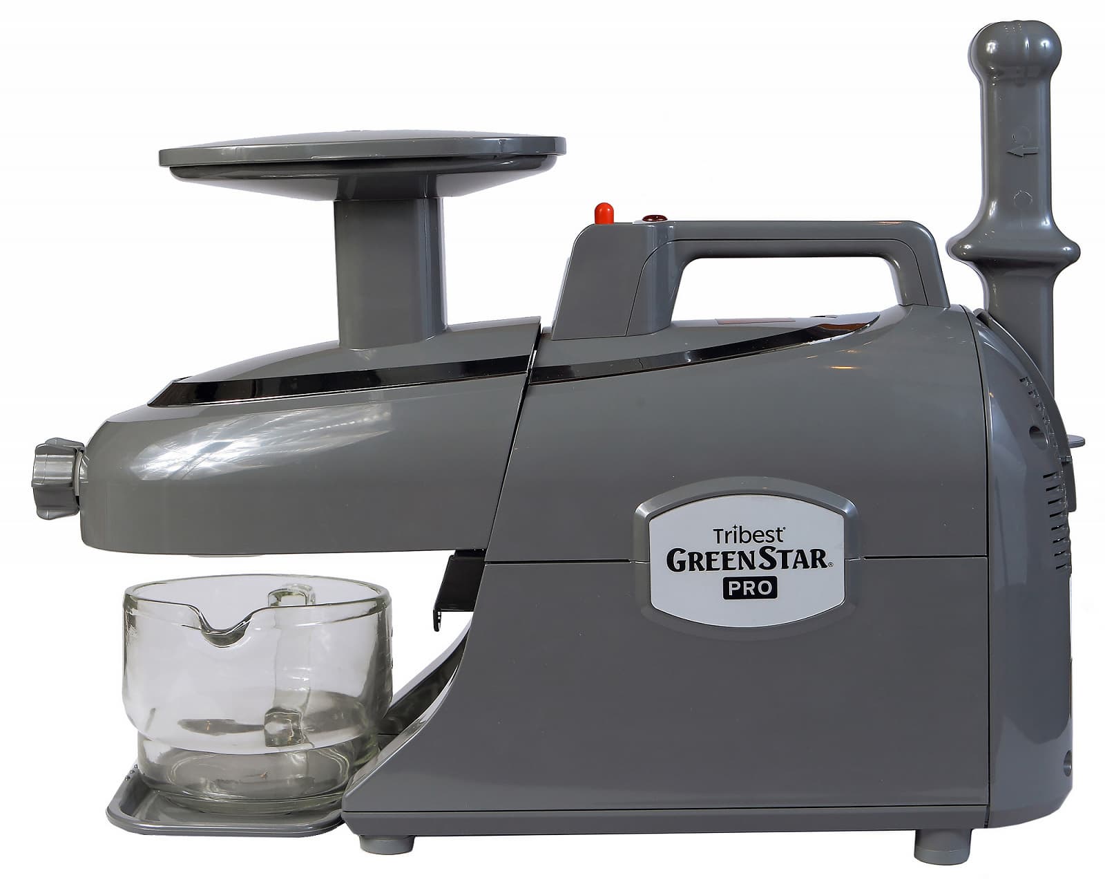 Tribest GreenStar Pro GS-P502 — одна из немногих протестированных нами шнековых соковыжималок, предназначенных не только для домашнего, но и для коммерческого использования. Эта двухшнековая соковыжималка южнокорейского производителя наиболее эффективно справляется с отжимом сока из корнеплодов, листовой зелени и дикоросов.