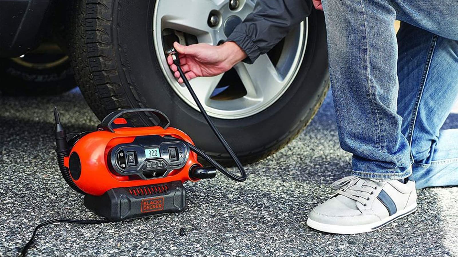 Универсальный компрессор Black+Decker BDCINF18N закачивает большие объемы воздуха под высоким давлением и может работать без проводов.