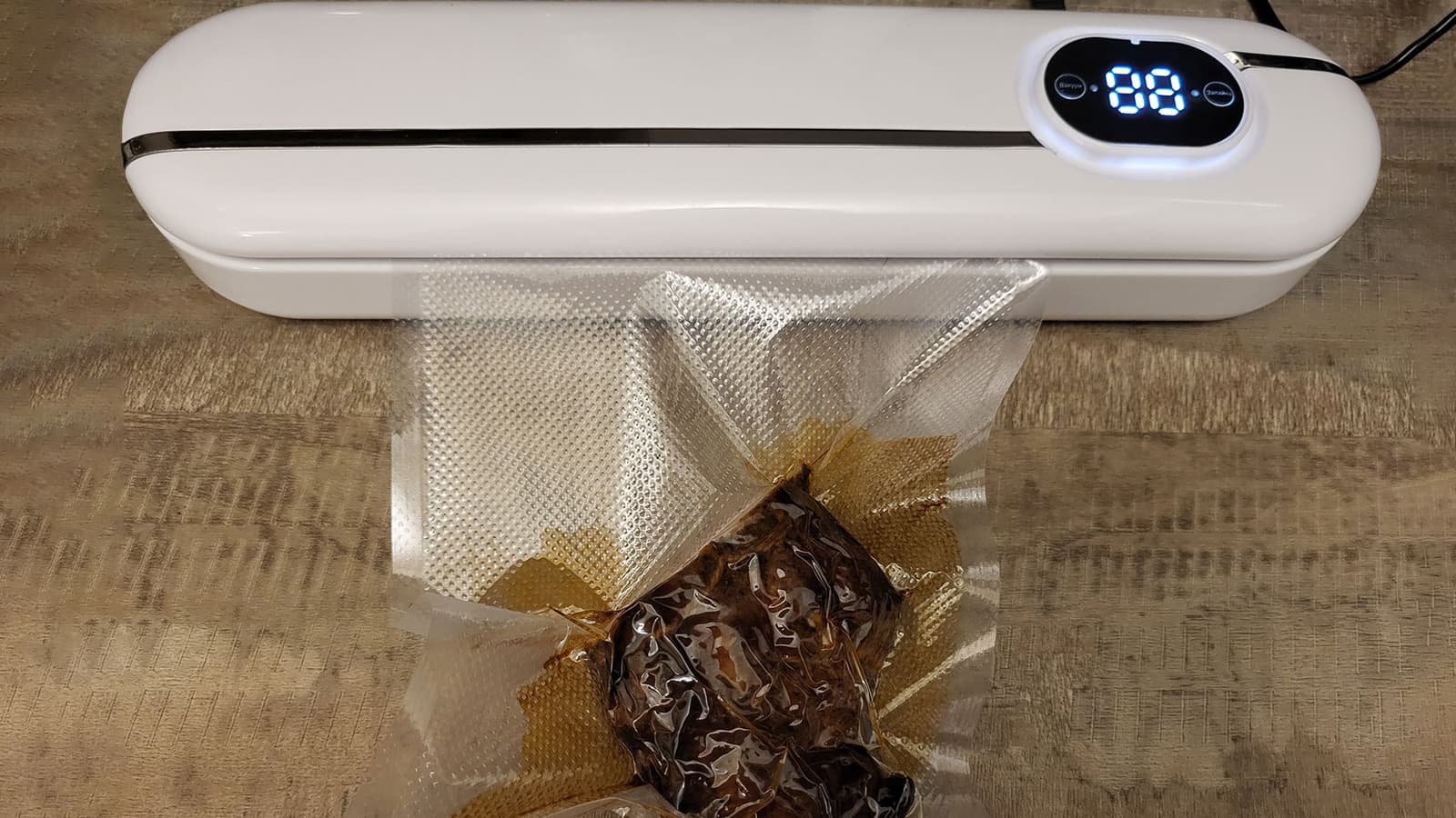 Эксплуатация прибора не вызвала никаких проблем, и, честно говоря, он нам понравился даже больше, чем более дорогие и функциональные вакууматоры. Никаких претензий ни к вакуумированию, ни к качеству шва у нас не возникло. Запаянные пакеты лежат несколько дней в холодильнике без разгерметизации.