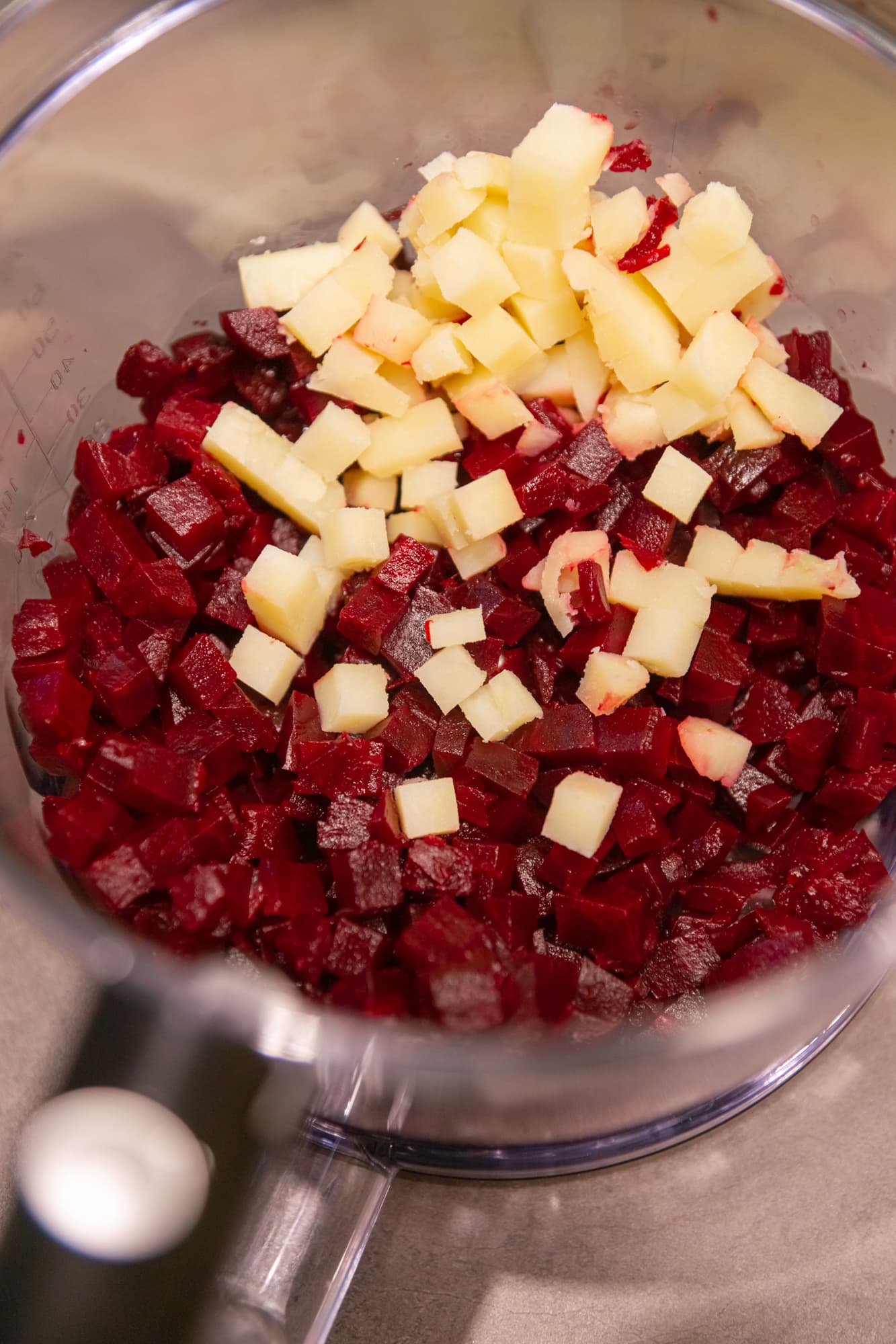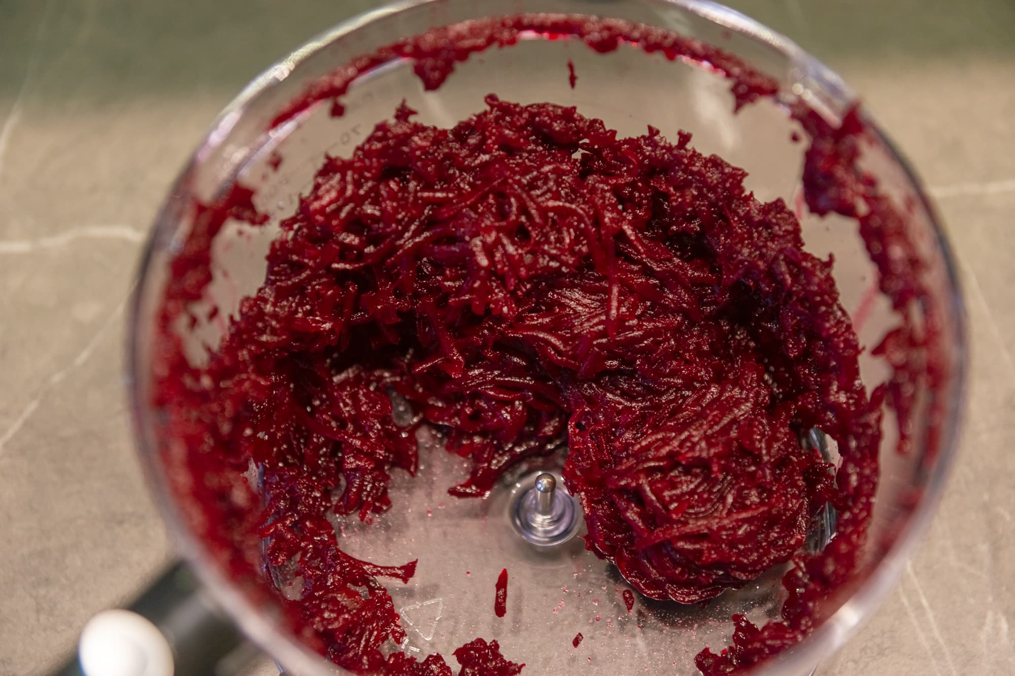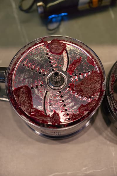 Функциональность непосредственно погружного блендера мы тут подробно разбирать не будем. Скажем лишь, что он вполне достойный — и смузи, и более густые смеси тут получаются более чем неплохими. А вот работу насадок рассмотрим чуть подробнее. Так, насадка-шинковка позволит измельчить, например, свеклу...