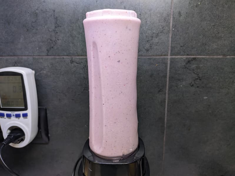 Максимальная мощность, зафиксированная ваттметром, составила 510 Вт (то есть, запас по мощности оказался более чем серьезный). Уровень шума достаточно высокий, но учитывая, что в среднем прибор работает 15—30 секунд, это не совершенно не мешает (вряд ли кто-то планирует использовать блендер посреди ночи).