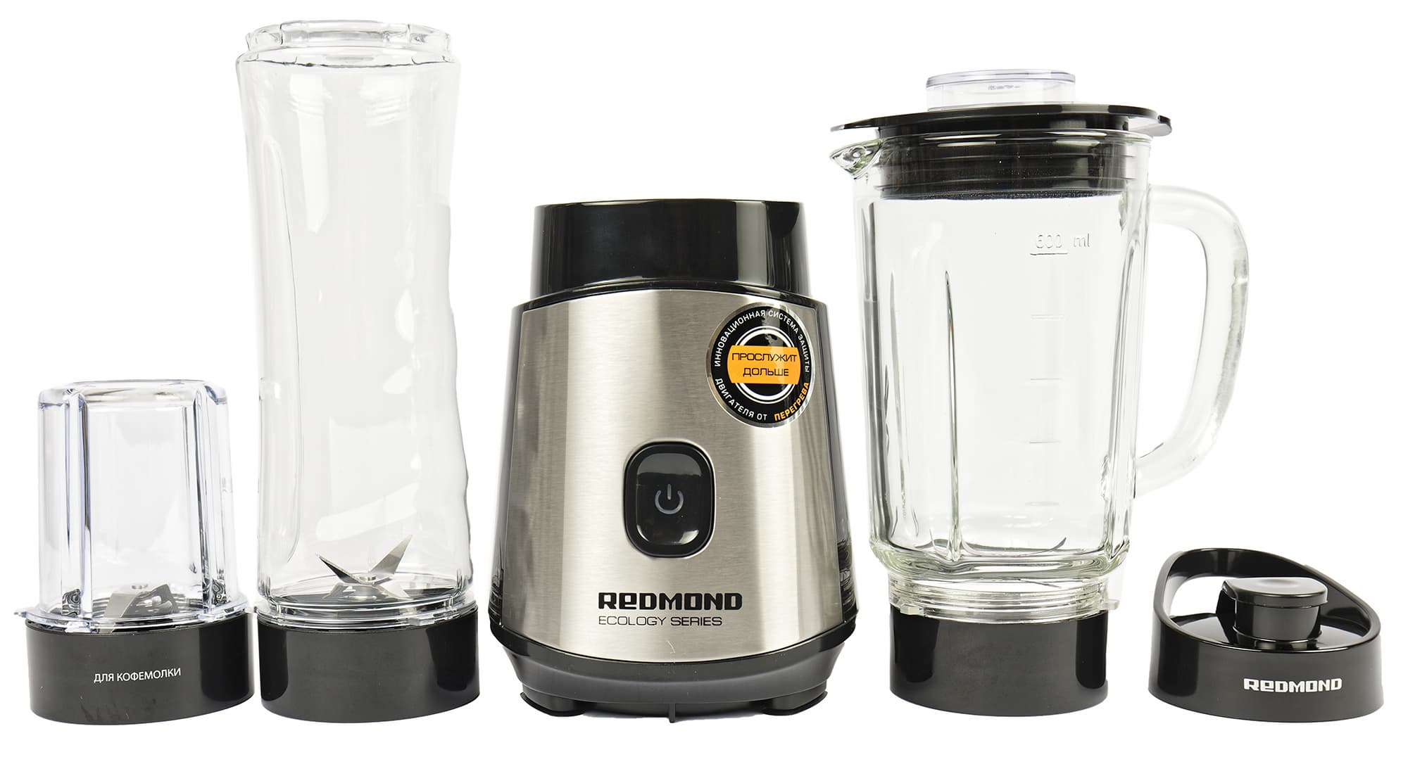 | Redmond RSB-M3427 | стеклянный кувшин, кофемолка и дорожный стакан | номинальная — 330 Вт, максимальная — 900 Вт | 1 скорость, измельчение до 55 грамм кофе за один раз |