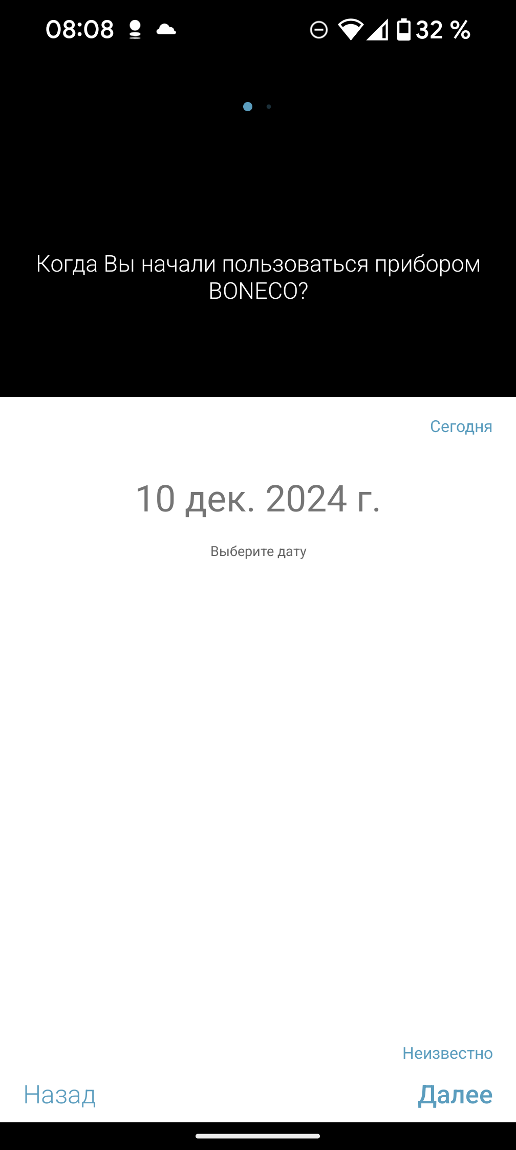 Последний шаг — ввод даты начала эксплуатации, с которой будет отсчитываться ресурс фильтра. Приложение не получает каких-либо данных об интенсивности использования прибора и предполагает, что замена картриджа потребуется ровно через 365 дней с первого запуска.