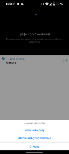 На странице информации о фильтре мы видим дату окончания его эксплуатации: приложение заблаговременно напомнит о необходимости приобрести новый картридж.