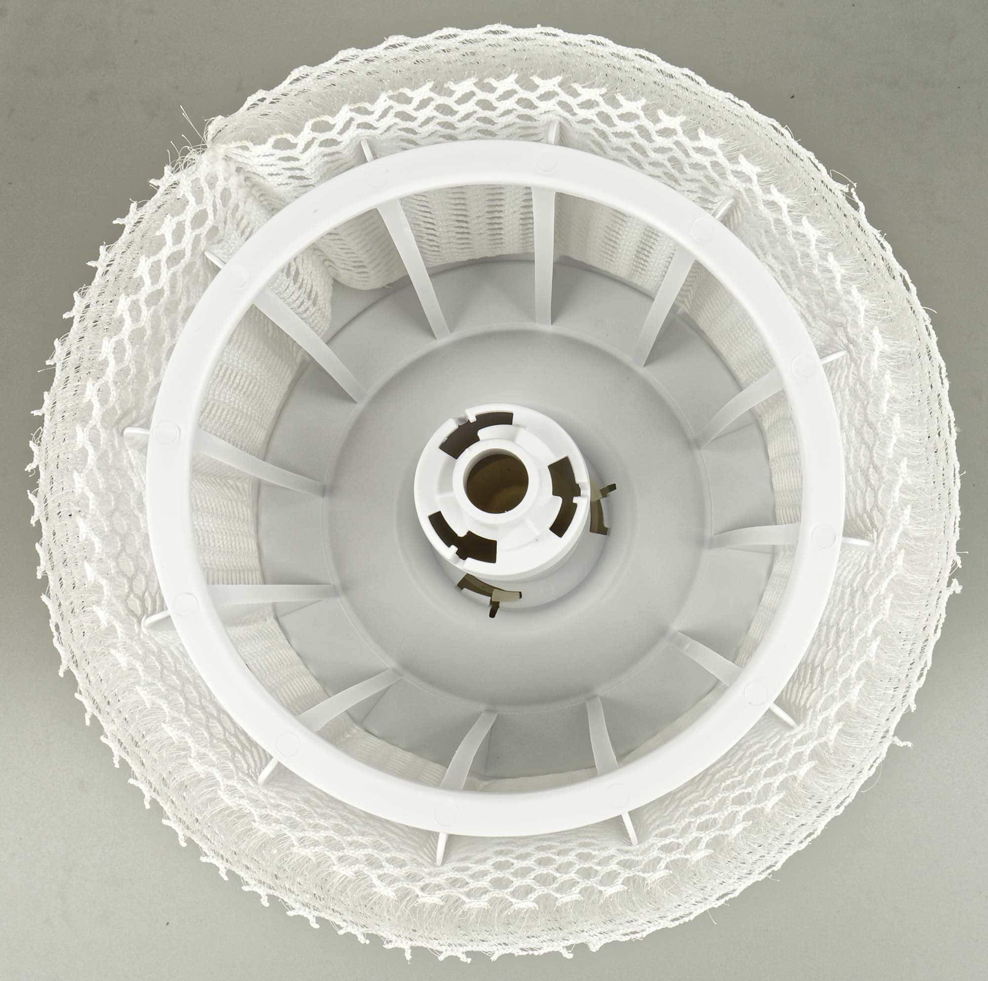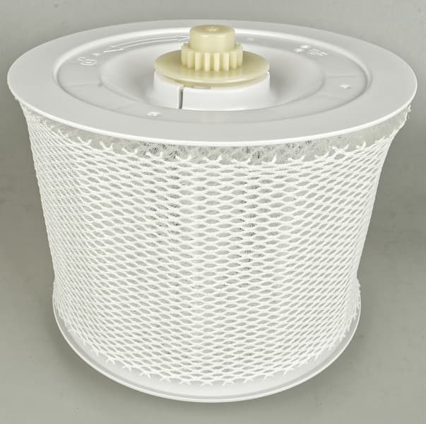 Конструкция ротора у Boneco W400 не такая, как у похожих по функциональности моек для воздуха, которые мы уже тестировали. Его рабочий элемент — не стопка пластиковых дисков, с поверхности которых происходит испарение, а синтетическая губка сложной трехмерной структуры на пластиковом каркасе.