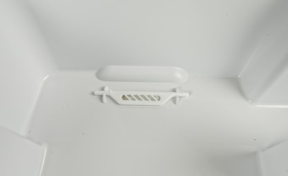 В середине задней стенки размещен шильдик с контактами производителя, техническими характеристиками и серийным номером изделия. Над ним выдвигается контейнер с губкой для ароматизации воздуха: при желании на нее можно нанести несколько капель водорастворимого душистого вещества.