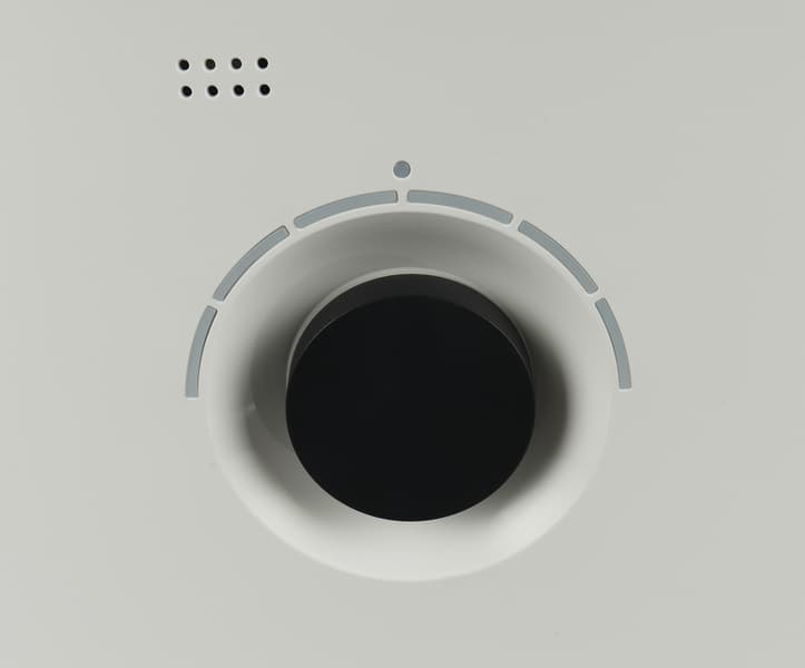 Полукруглая зона над изображением прибора нужна для установки нужной мощности вращения вентилятора мойки. Над ней можно видеть данные со встроенного сенсора: относительную влажность и температуру воздуха.
