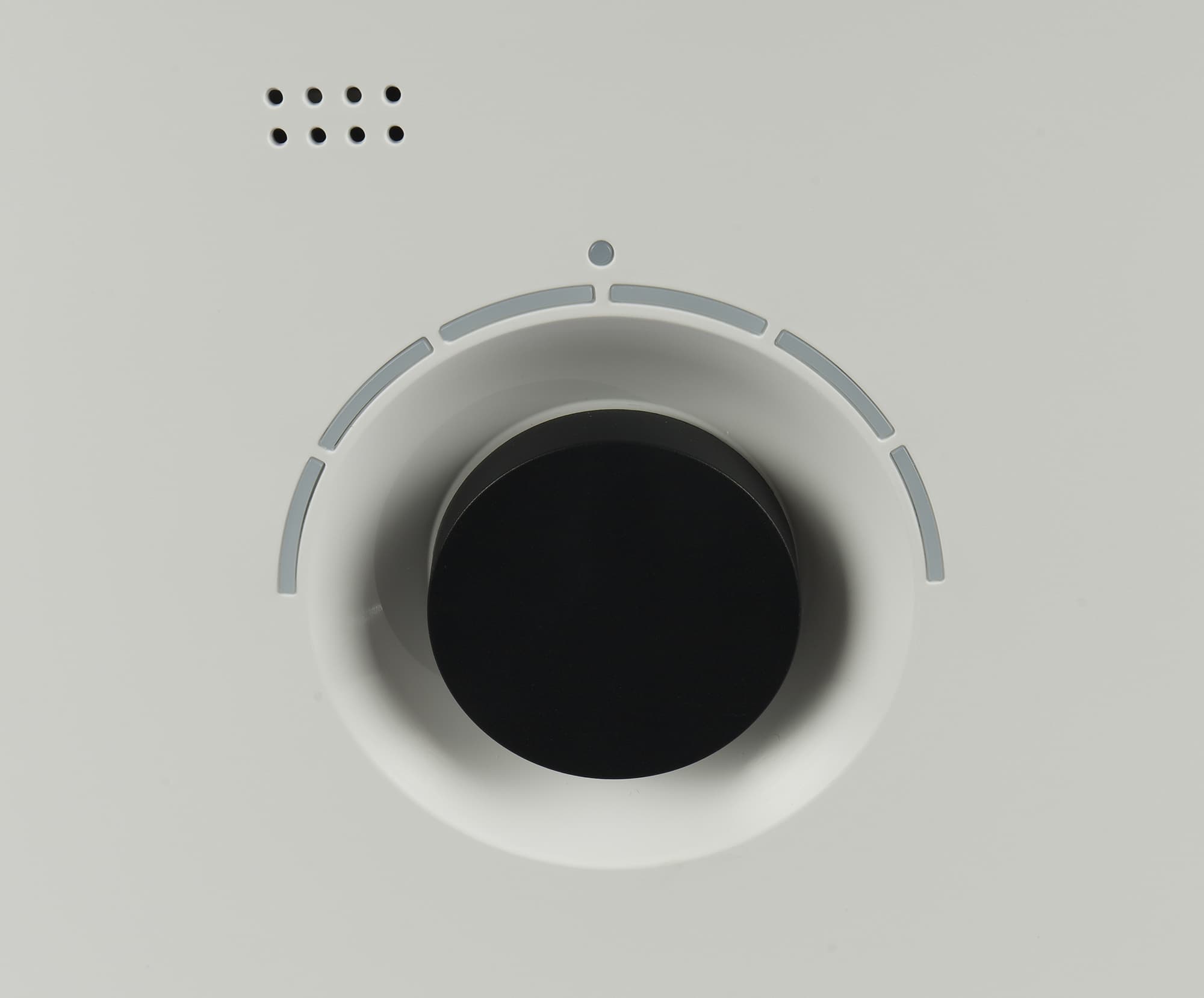 Устройство запускается в автоматическом режиме, самостоятельно выбирая мощность в зависимости от влажности воздуха в помещении. При необходимости программу можно выбрать вращением ручки: у Boneco W400 шесть уровней интенсивности. Текущий режим работы отображается на полукруглом шестисегментном индикаторе с голубой подсветкой.