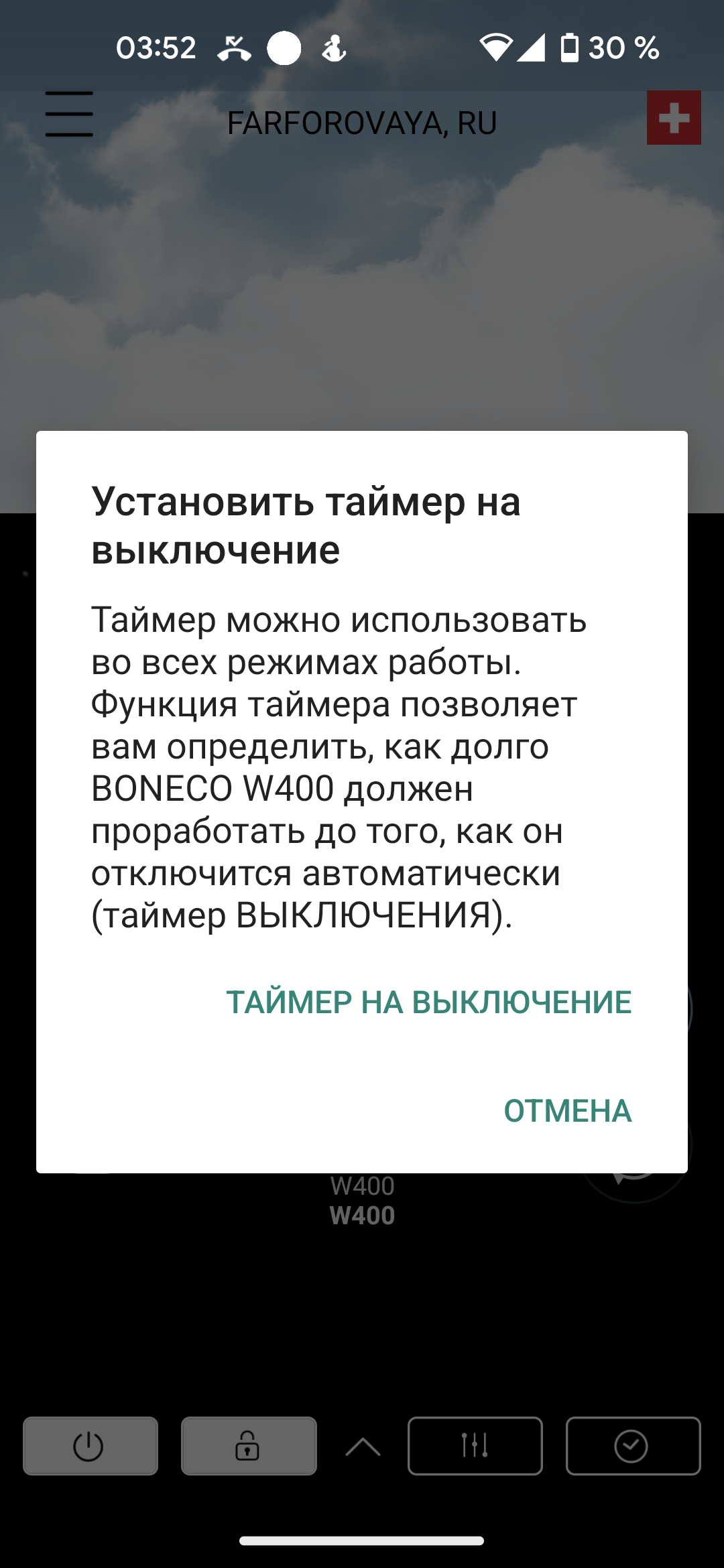 Чуть выше и левее рукоятки расположены отверстия, за которыми скрыт датчик температуры и влажности. У модели W400 нет индикации текущих параметров воздуха — их можно узнать только в мобильном приложении.