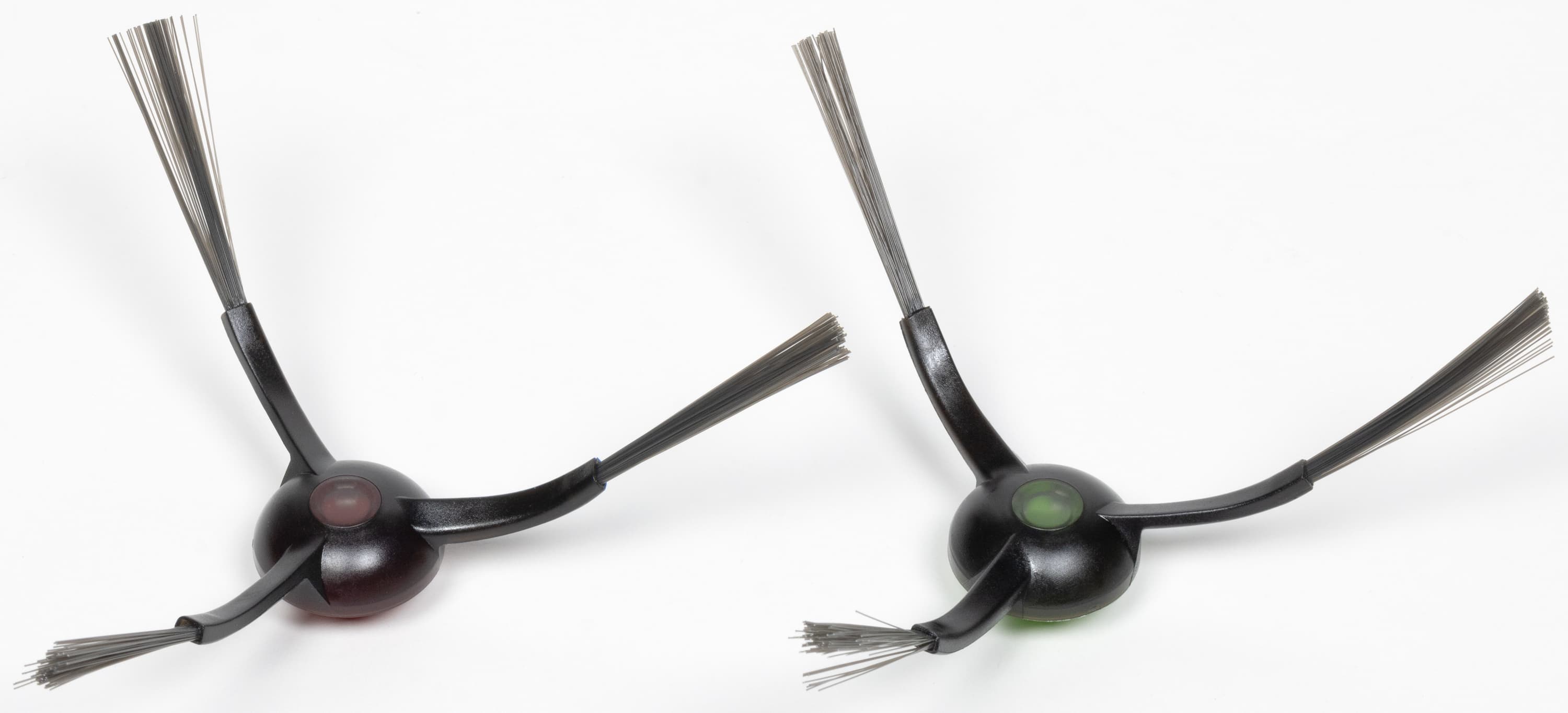 Щетки делятся на правые и левые. Они промаркированы зеленым и красным цветом соответственно. Устанавливаются и защелкиваются щетки на своем месте путем легкого нажатия.