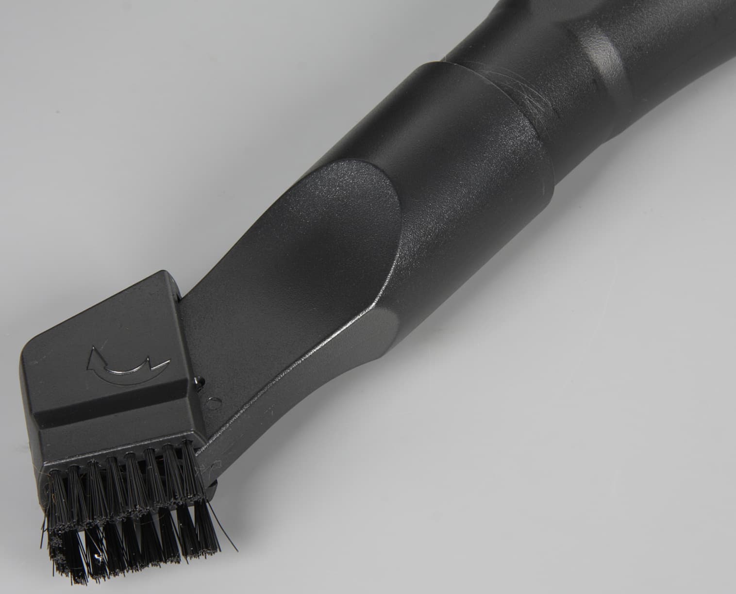Паз сзади геометрически соответствует выступу на комбинированной щетке, что позволяет фиксировать щетку со шлангом и трубой на корпусе пылесоса.