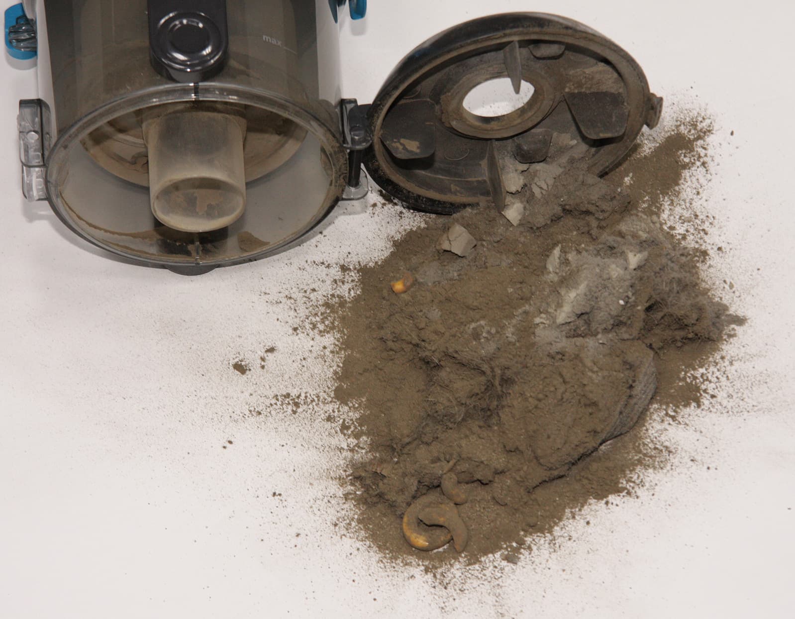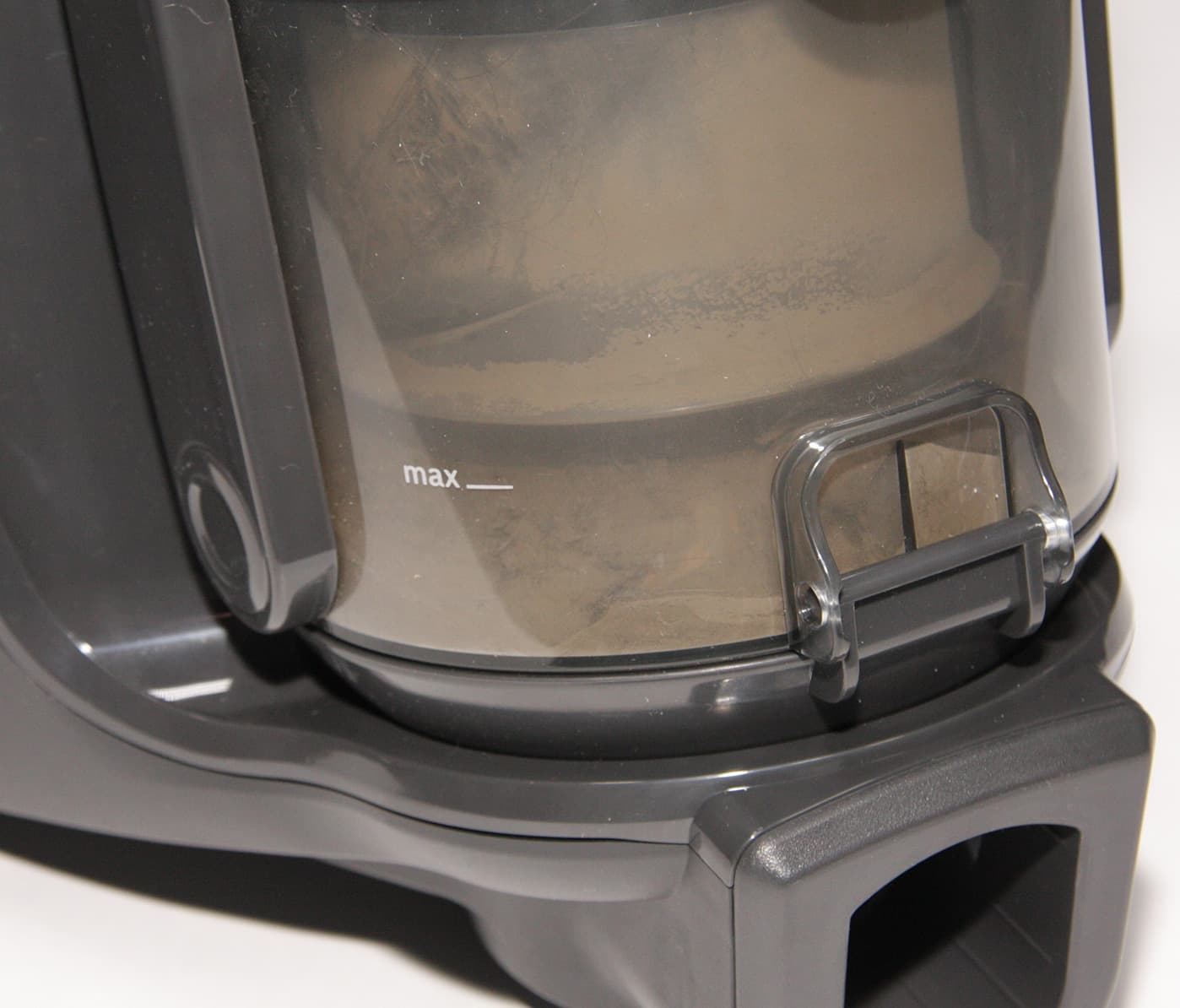 Практически весь мусор высыпался, стоило только открыть нижнюю крышку пылесборника.