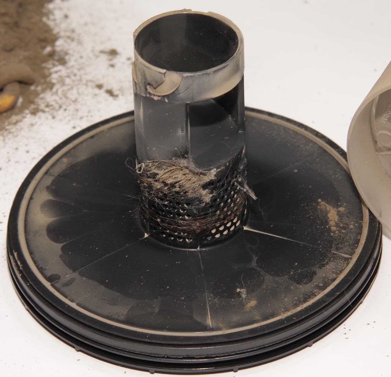 Немного мусора зацепилось за внутреннюю сетку циклона.