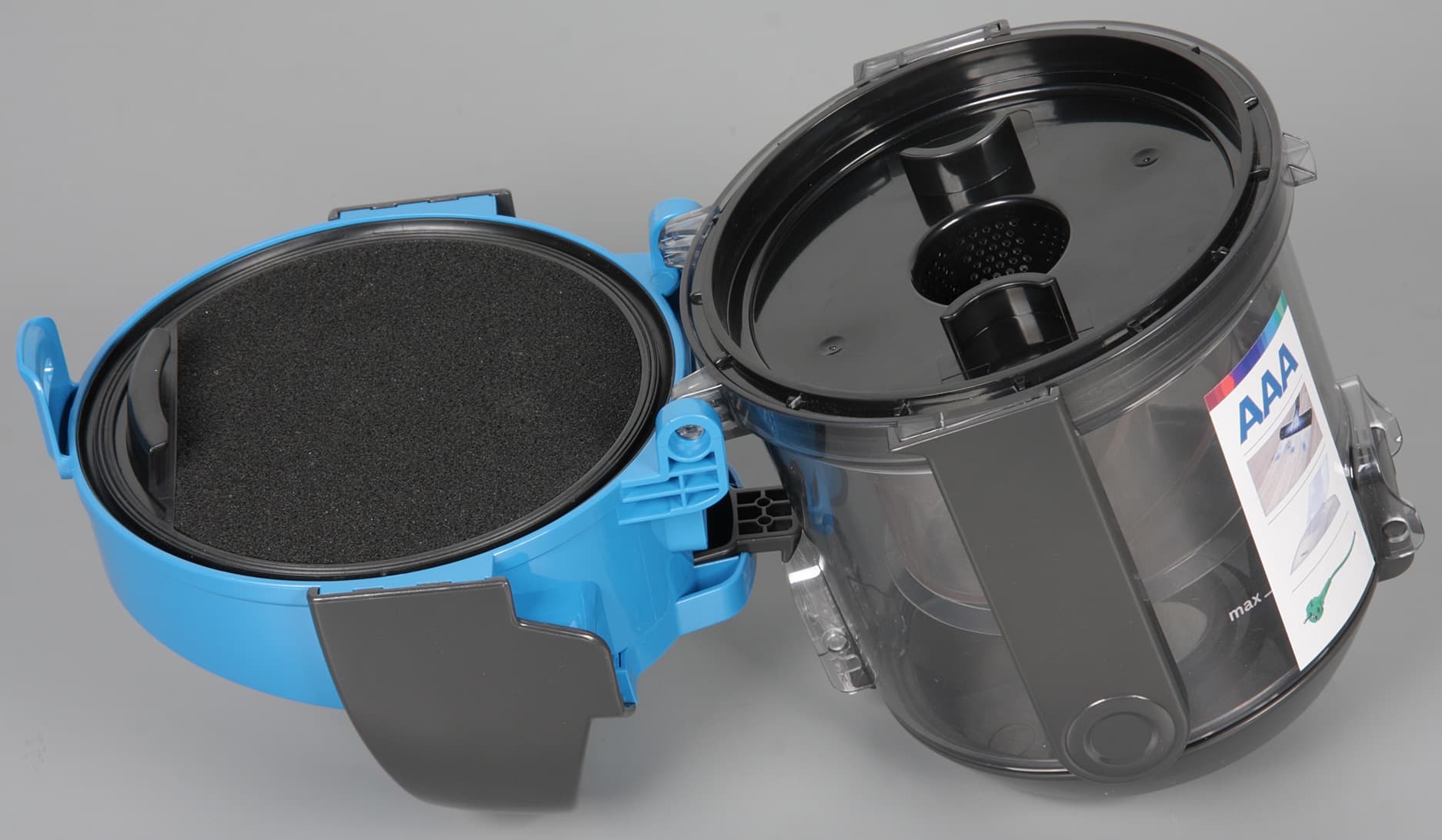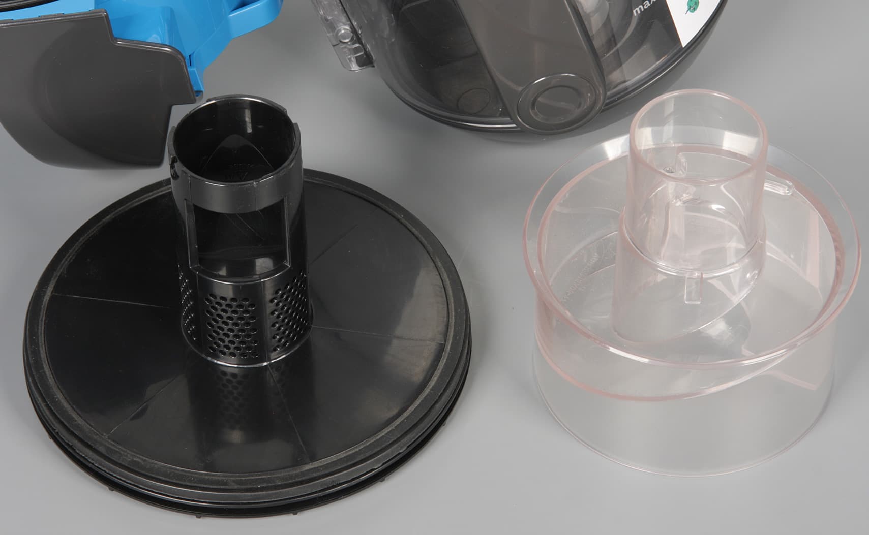 Также можно извлечь две детали, формирующие циклонный фильтр, и промыть их.