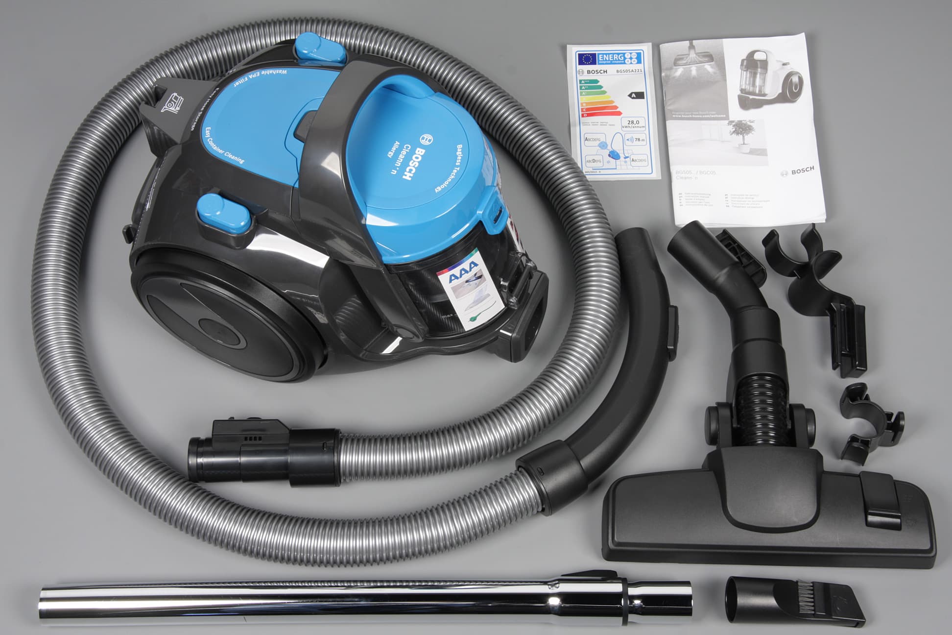 Пылесос Bosch Cleann’n BGS05A221 имеет практичный дизайн и относительно простую конструкцию. Весит он немного, а сверху есть ухватистая ручка, поэтому пылесос удобно переносить. Специальный держатель для шланга позволяет хранить пылесос в компактном виде. Два эффективных моющихся фильтра очищают выпускаемый воздух от самой мелкой пыли. Мощность всасывания достаточно высокая, при этом потребление от сети снижено, а работает пылесос тихо. В итоге данный пылесос позволяет экономить на обслуживании и электроэнергии без ущерба для качества уборки. Далее в списках перечислим не упомянутые достоинства и недостатки.