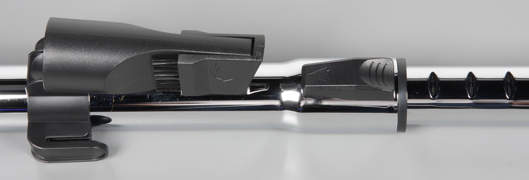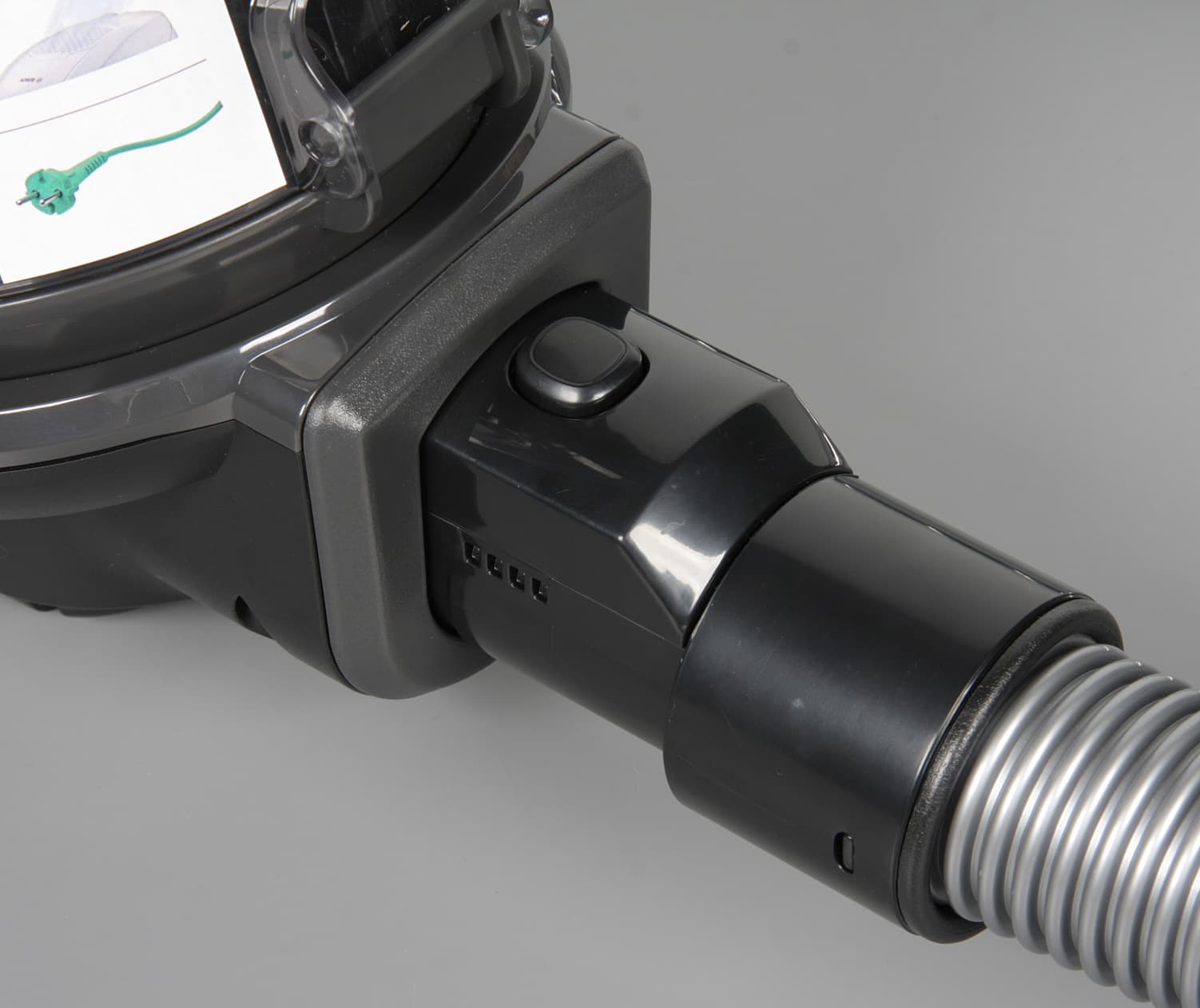 На рукоятке шланга есть простой движковый клапан для снижения мощности всасывания.