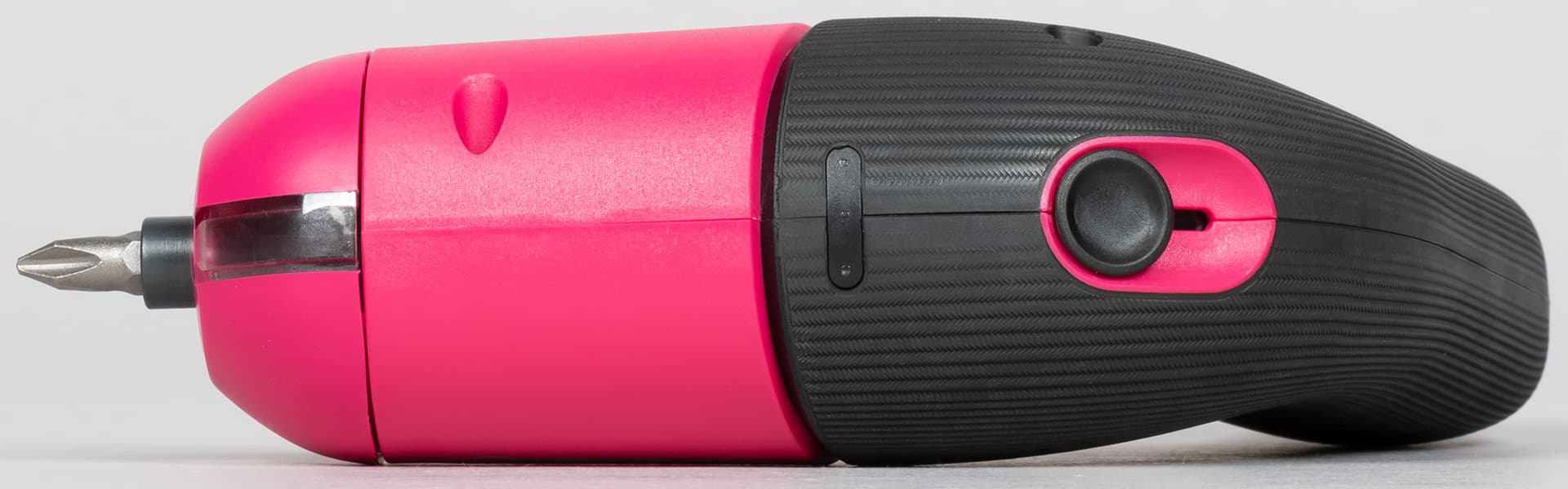 Никакого намека на классическую форму электроотвертки или шуруповерта. Правильно, так и должно быть в нишевом продукте. Он должен отличаться от распространенных инструментов аналогичного назначения. Формой, расцветкой и даже функциональностью. Все перечисленное здесь имеется: вместо рубленых краев — мягкие изгибы, вместо строгих рабочих тонов — розово-черный окрас. Ну а функциональность... Кто еще может сыграть восемь разных ролей, пусть и с помощью дополнительных насадок?