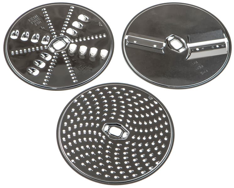 - три диска для терки — два двусторонних для терки и шинковки, один — односторонняя терка