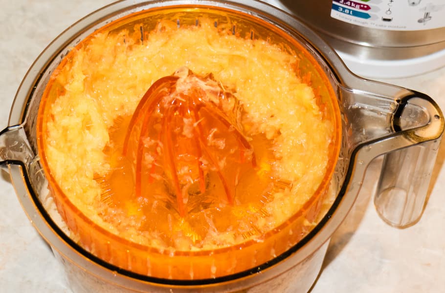 Отверстия сита, как мы указывали выше, частые, поэтому почти все волокна, перепонки, косточки и прочие составляющие мякоти оказываются в отжимной корзине, не попадая в сок.