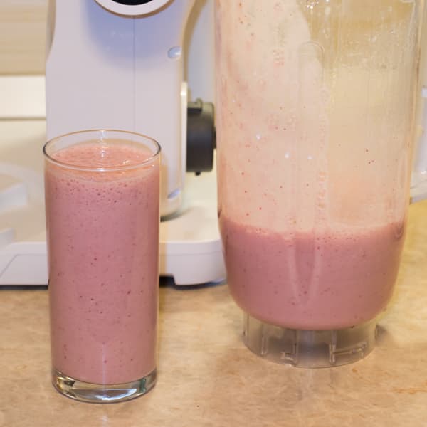 Удивительно, но всего за 30 секунд получился прекрасного качества коктейль: взбитый, наполненный мелкими пузырьками воздуха, все ингредиенты тщательно измельчены и не различаются в общей массе. В готовом напитке нам не удалось встретить ни единого неизмельченного кусочка замороженной ягоды.