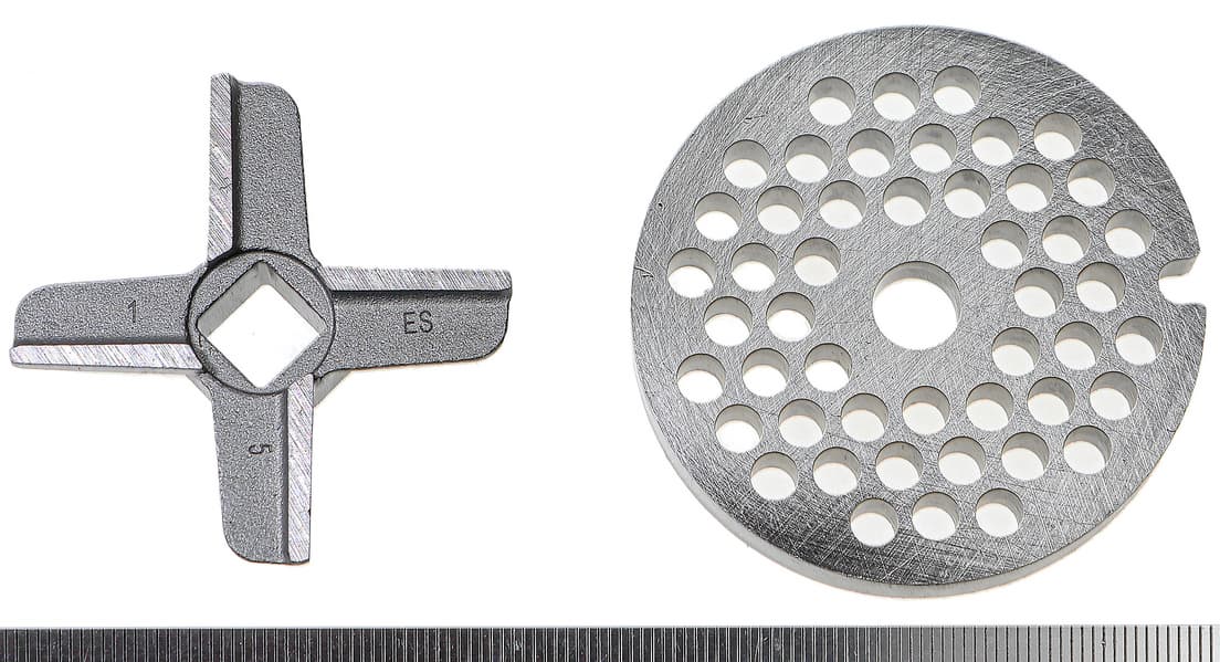| Материал блока мясорубки | корпус, винт, кольцевая гайка — силумин, решетка и ножи — сталь, загрузочная корзина, толкатель — пластик |