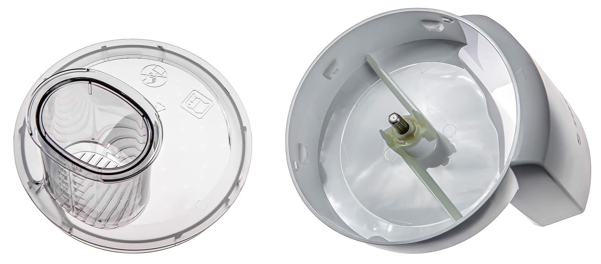 - насадку-терку, представляющую собой пластиковый корпус, держатель дисков, крышку с загрузочным отверстием и толкатель