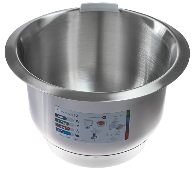 Итак, разберемся с моделью комбайна Bosch MUMS2EW40 из серии MUM 2. В нем есть: планетарный миксер, мясорубка, соковыжималка для цитрусовых, блендер и овощерезка. По желанию прибор можно доукомплектовать множеством аксессуаров, начиная от подставки для хранения принадлежностей и пластиковой чаши для миксера и заканчивая насадкой для изготовления пасты.
