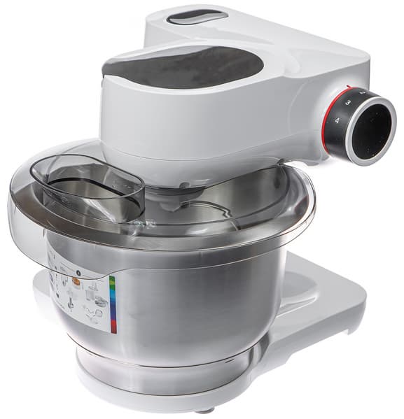 Кухонный комбайн Bosch MUMS2EW40 отлично справляется со всеми возложенными на него функциями. Ни одна из задач не реализована по остаточному принципу — прибор замешивает тугое тесто и взбивает сливки, готовит фарш, делает смузи и коктейли, натирает овощи и жесткий шоколад или твердый сыр, давит сок из цитрусовых. Прибор и его аксессуары приятно держать в руках. Конструкция комбайна продумана до мельчайших деталей, а насадки, подвергающиеся максимальной нагрузке, оснащены защитой. Так, если терка или мясорубка столкнутся с перегрузкой или заеданием вала, то небольшая сменная деталь насадки ломается в определенном месте.
