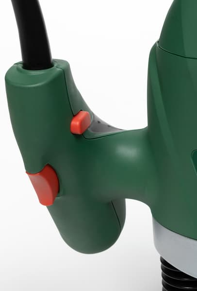 Проведя мысленную ревизию имеющегося парка инструментов, автор пришел к выводу, что подобной доработке не подвергались только ручные машины бренда Bosch и еще одной торговой марки, «не скажу какой, но тоже хорошей». Однако наш фрезер — исключение. Вот он, первый найденный минус: удерживать нажатой кнопку пуска можно не дольше минуты-двух, после чего ваш средний или указательный палец научится непристойным словам. Очень тугая пружина в этой кнопке, очень. А блокировка в кнопке отсутствует. Во имя безопасности, вестимо.