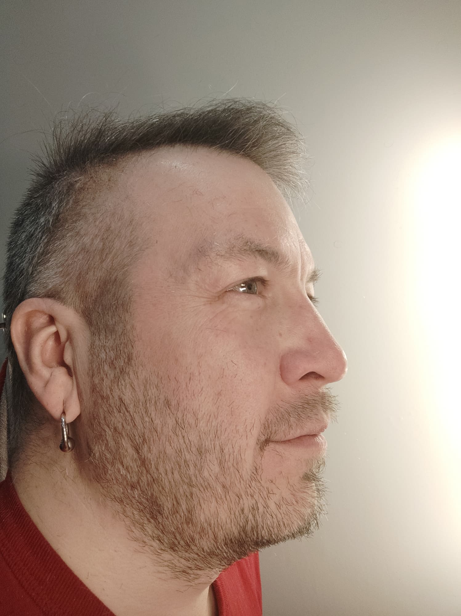 Сначала мы обработали щеки (там попадаются отдельные волоски) и область под бакенбардами.