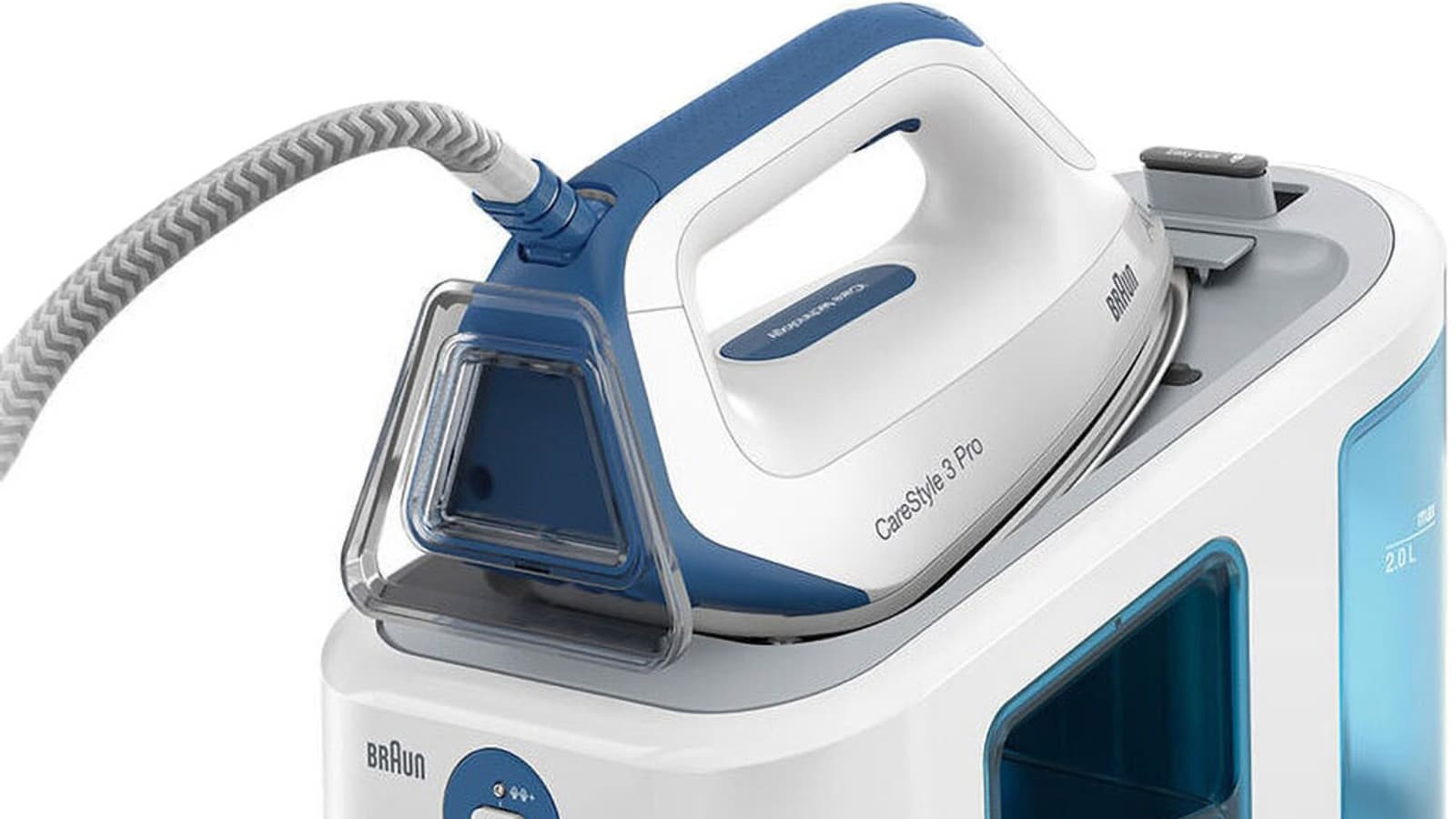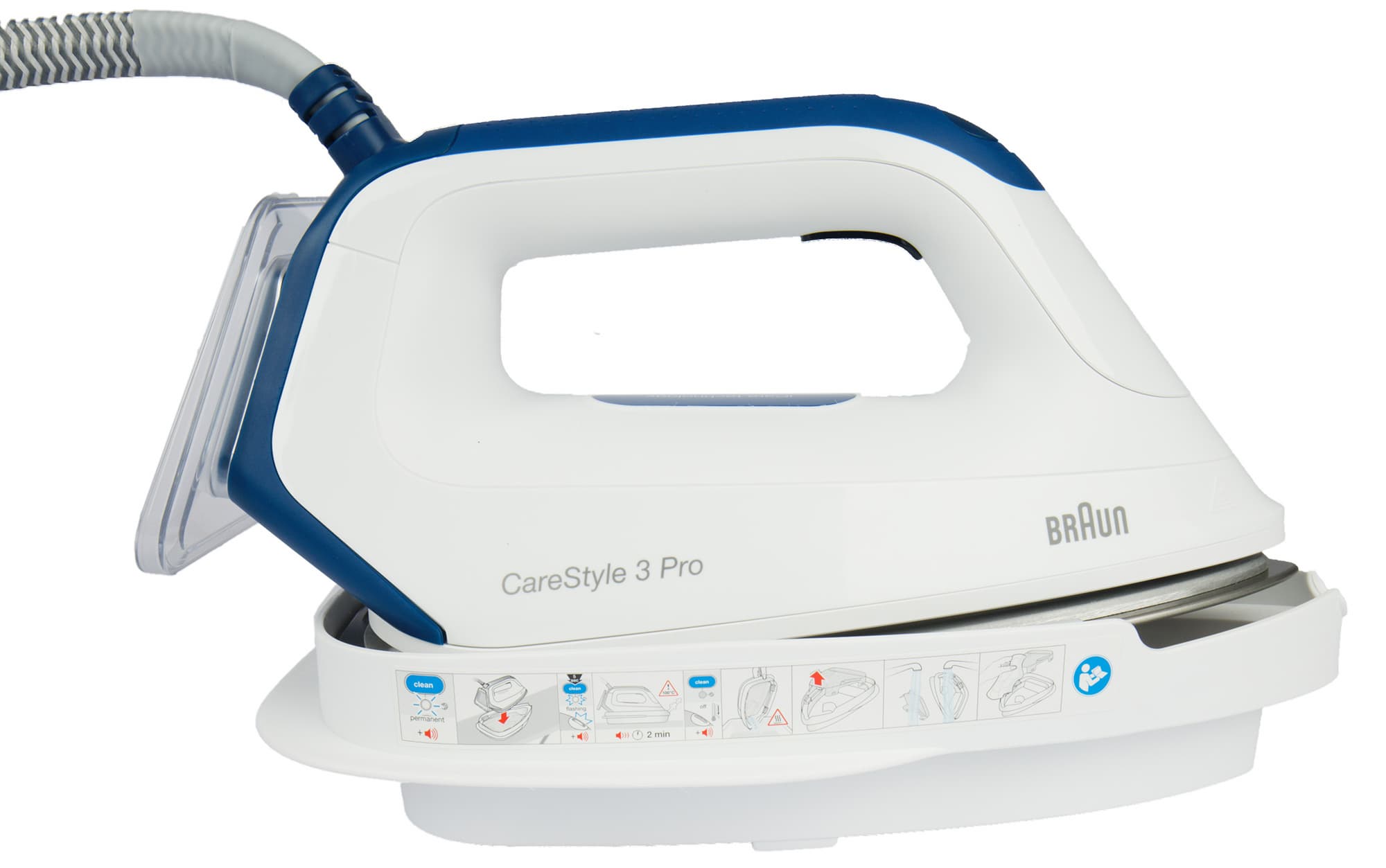 Braun CareStyle 3 Pro понравился нам своей высокой производительностью, продуманным весом утюга, отличной удобной подошвой, большой емкостью для воды. Прибор оснащен всеми необходимыми функциями: регулировкой температурных режимов, паровым ударом, возможностью использовать утюг для вертикального отпаривания, удобной подошвой Eloxal Plus, программой автоматического отключения и защитой от брызг. Это устройство значительно облегчит работу по глажке и отпариванию большого объема постельного белья, вещей изо льна и сложных тканей, портьер, сценических костюмов.