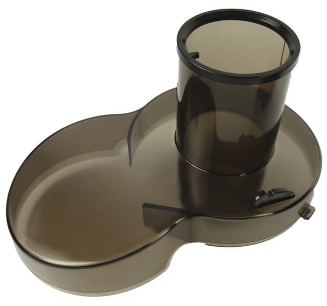 Носик слива подстроен под емкость сбора сока, у которого есть отдельная крышка. А еще на него нанесена разметка. Контейнер для жмыха накрывается одной крышкой с моторным блоком, внешне фактически сливаясь с прибором.